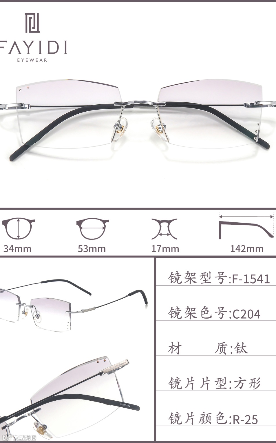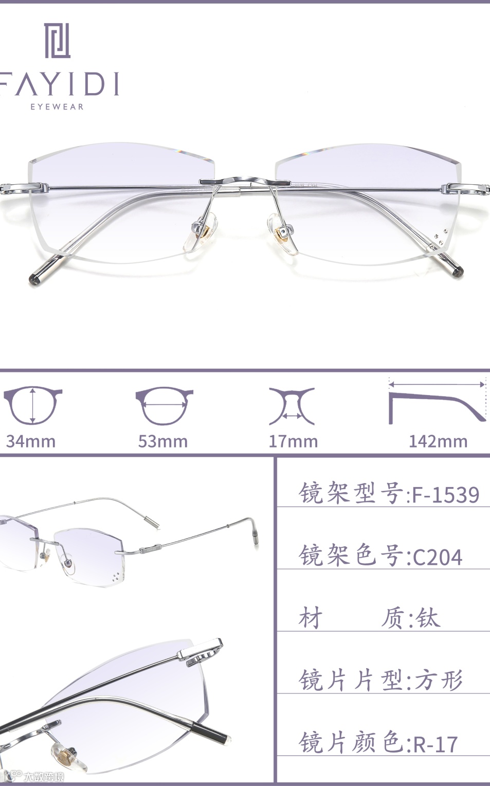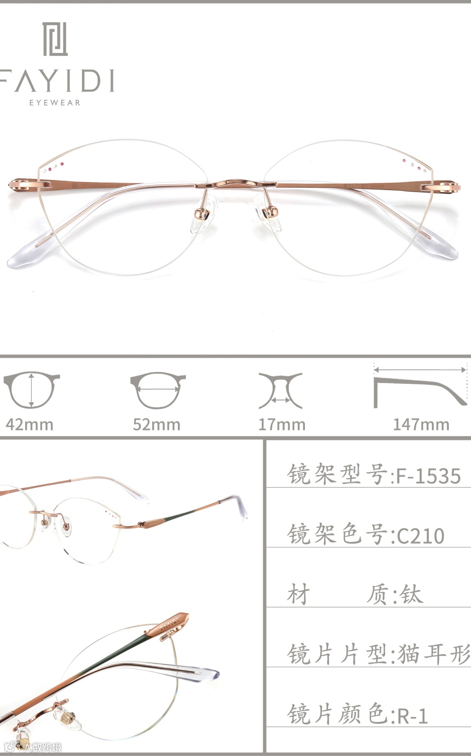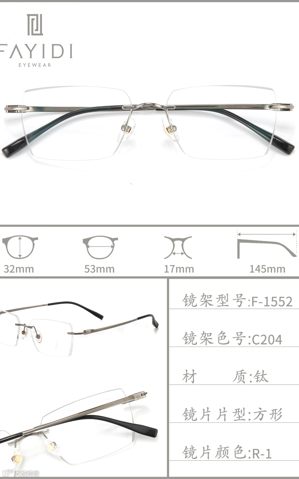 (专利号202220004546.4):通过切削工艺将镜片延伸凸部弄薄,让无框眼镜视觉上更轻薄,尤其适配高度数镜片,解决了传统无框眼镜桩头安装处显厚的问题。