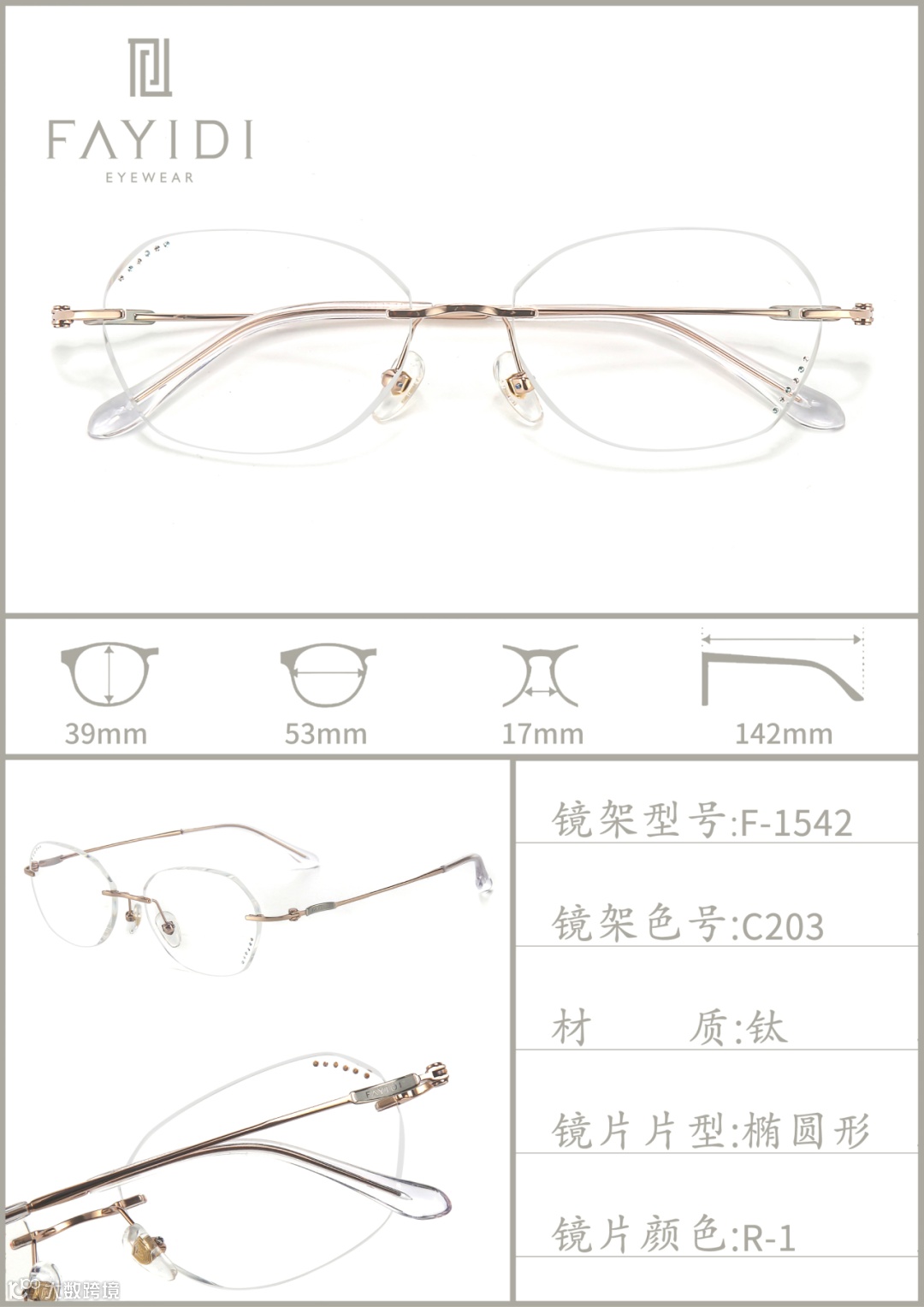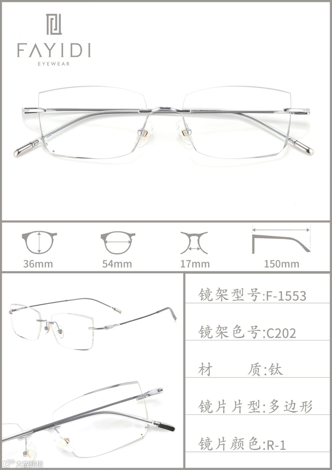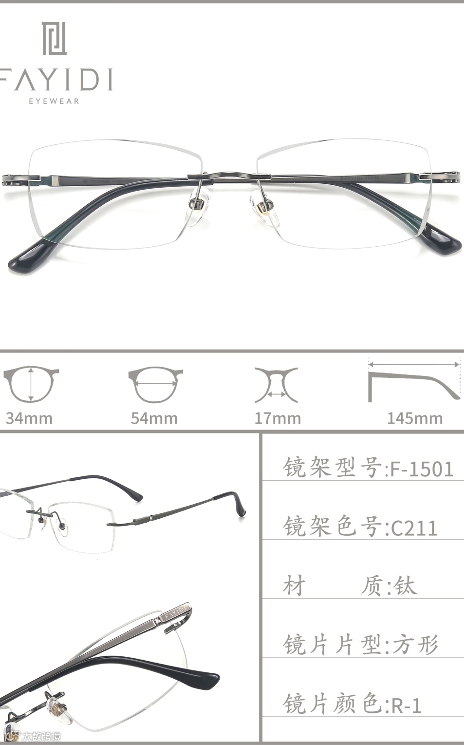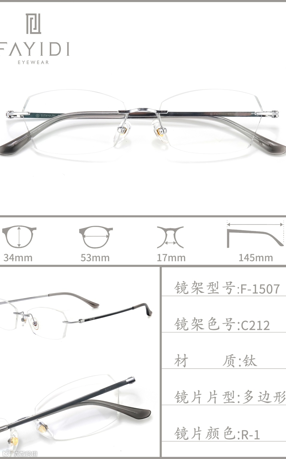 (专利号202220004546.4):通过切削工艺将镜片延伸凸部弄薄,让无框眼镜视觉上更轻薄,尤其适配高度数镜片,解决了传统无框眼镜桩头安装处显厚的问题。