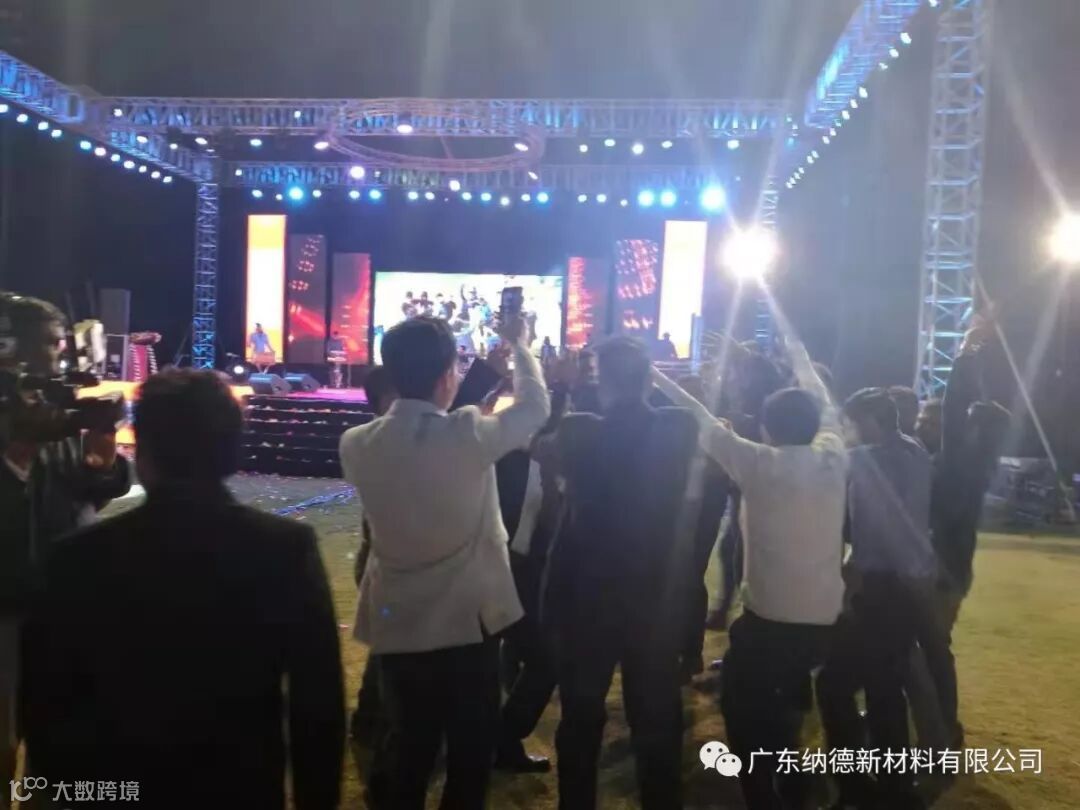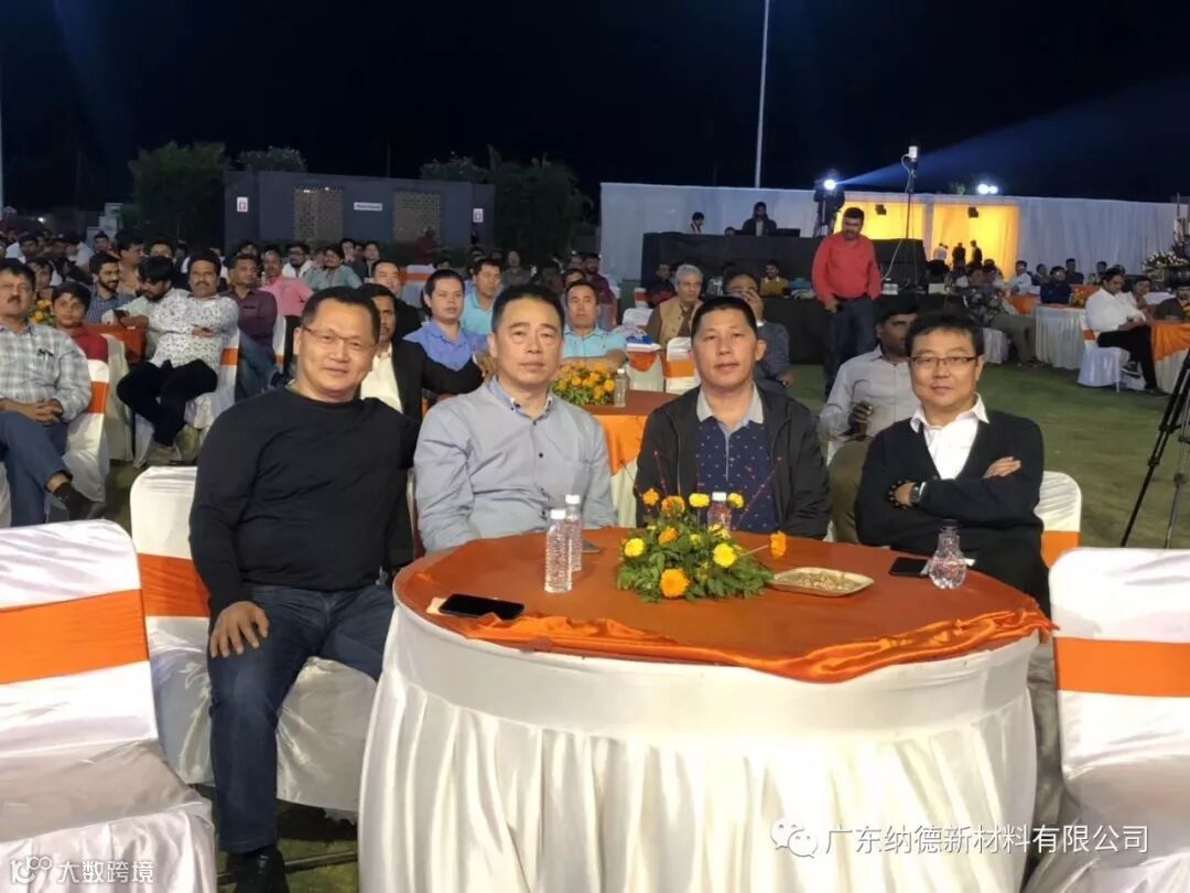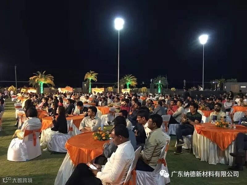 五家企业的代表均发表了热情洋溢的欢迎致辞,纳德精工副总经理谢诚先生代表公司在晚宴致辞中不仅表达了服务印度陶瓷行业的真情,同时还向来宾们简要介绍了纳德精工拥有创新技术的智能大板抛光整线装备,以及生产工艺配套服务的优势。整个派对按照印度传统的庆祝仪式举行,传统歌舞、晚宴招待、抽奖活动的内容精彩纷呈,活动进入高潮时,宾主一起随着节拍载歌载舞,大家在欢乐热烈的气氛中增进了彼此的友谊!派对至凌晨一点后方结束。