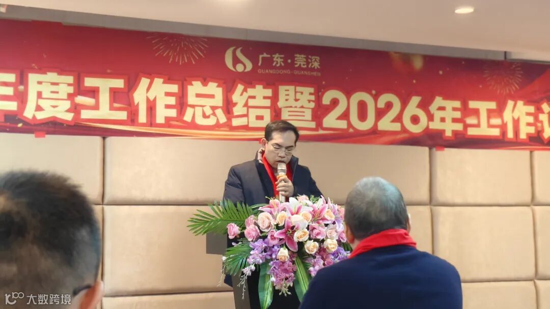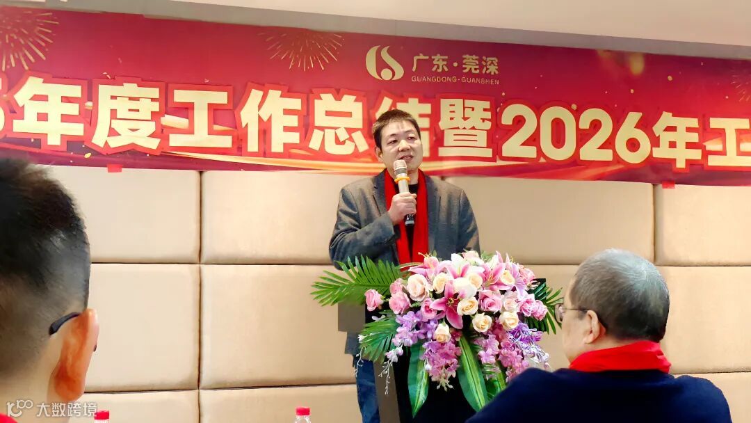 会议最后,公司总经理李广东发表总结讲话。李总指出:"2025年是东莞莞深公司发展历程中具有里程碑意义的一年,全体同仁在各自岗位上恪尽职守,作出了突出贡献。"他深情回顾了自2016年莞深商贸城创立以来走过的十年发展历程,并展望未来:"广东莞深集团秉持打造百年企业的战略愿景,致力于将'莞深商贸城'模式从东莞推向全国,实现其在全国范围内的落地生根。随着中国制造业向高端化、专业化方向转型升级,该模式发展前景广阔,必将成为全国商贸领域的标杆典范。展望未来,莞深集团全国战略实施的关键在于将核心优势要素逐一打造为行业标杆。