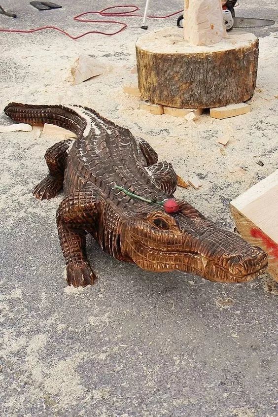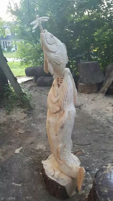 树桩做成的鲨鱼,破土而出呀!
