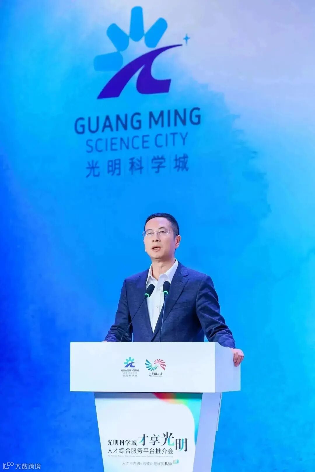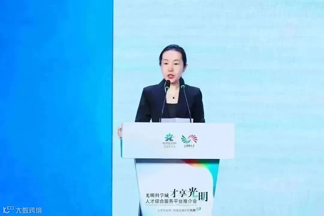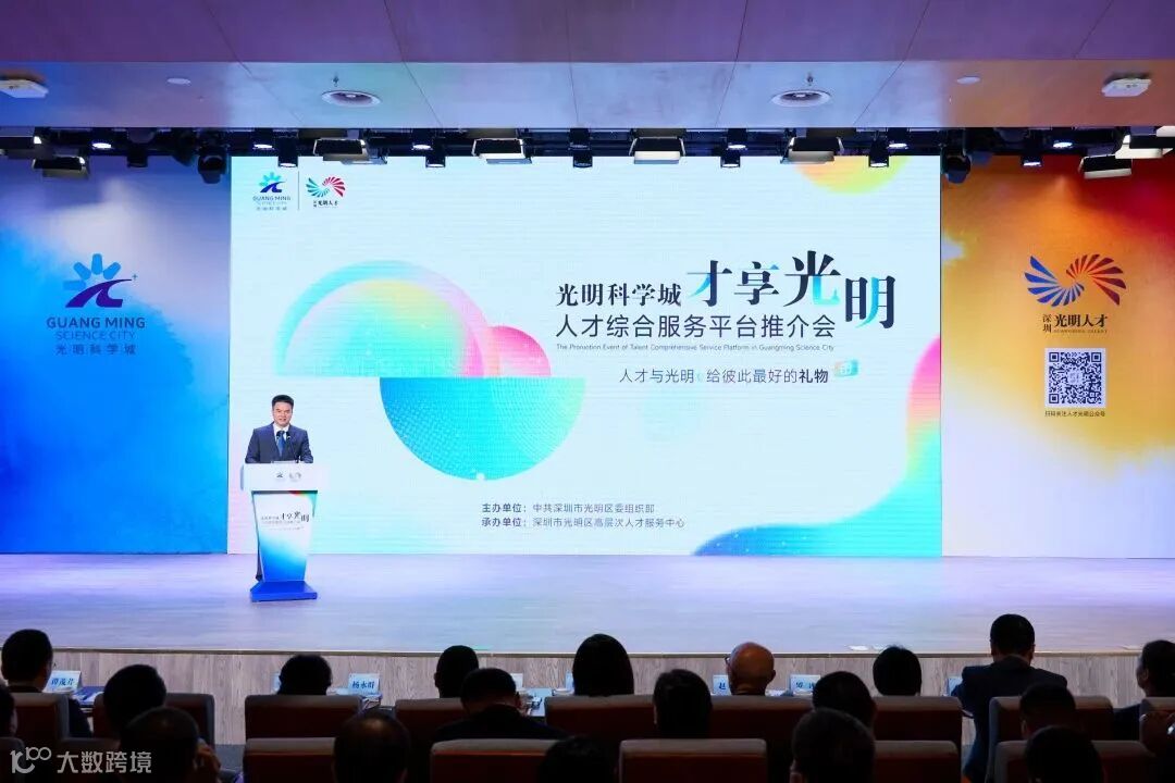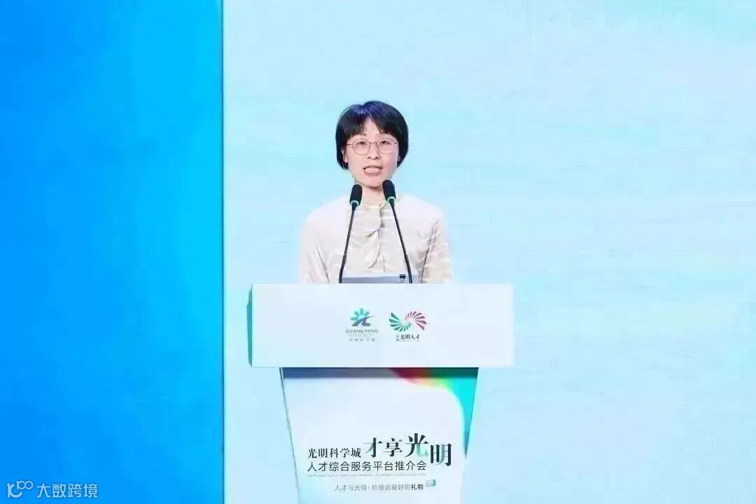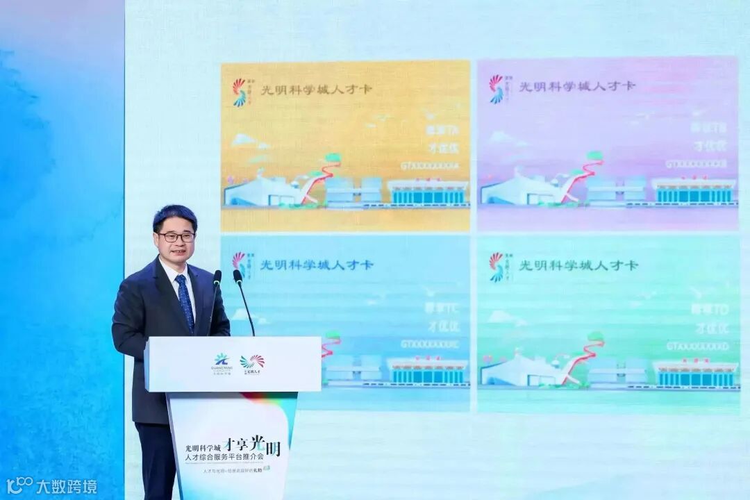 光明区委组织部相关负责人在推介会上向与会嘉宾和人才推介光明科学城“才享光明”人才综合服务平台,如: