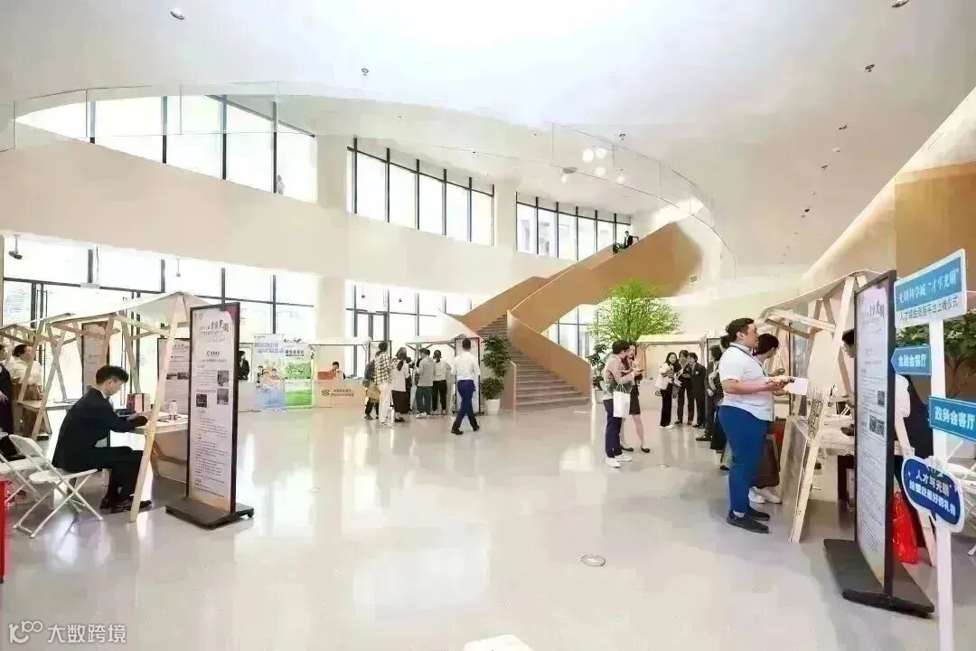 会场外还设置了金融会客厅、政务会客厅等人才集市,精品文创、银行摊位、美食饮品,优质服务触手可及!