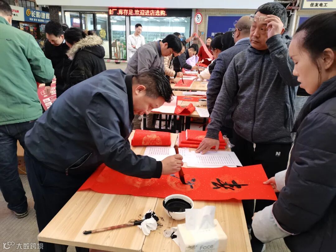 得益于活动前的精心准备、周密筹划,活动现场秩序井然、商户们有序排队按需选对,服务人员细心服务,现场墨香四溢、红纸黑墨映照着莞深商户们喜悦、满足的笑脸,文化之风在莞深市场不胫而走....