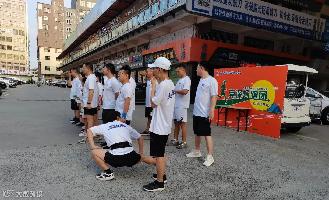 畅跑前商户在莞深商贸城南门集合、热身▲