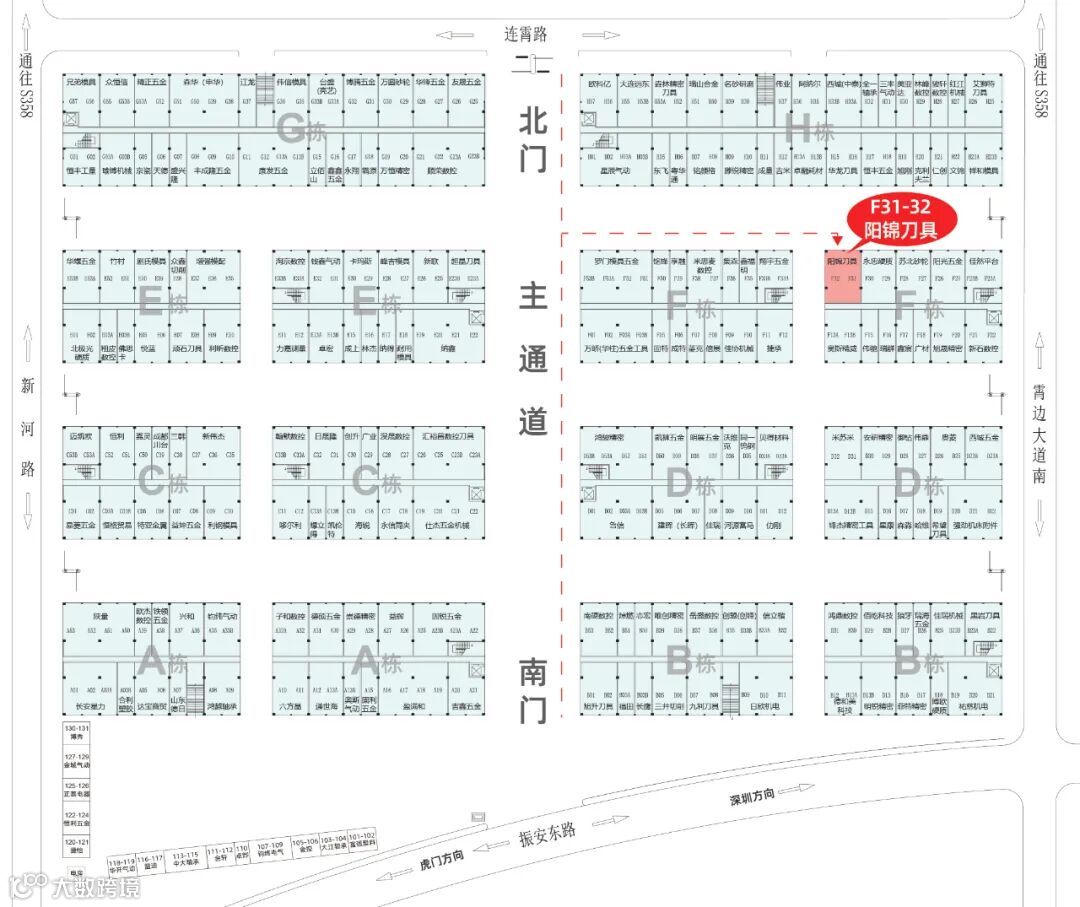 阳锦刀具莞深店,从莞深南门主通道(振安路入口)直进,至F栋与H栋之间,直行15米即可看见阳锦刀具门店招牌。