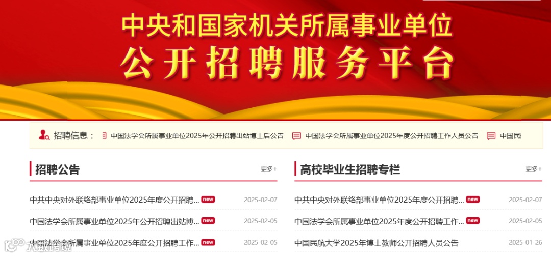中央和国家机关所属事业单位公开招聘服务平台