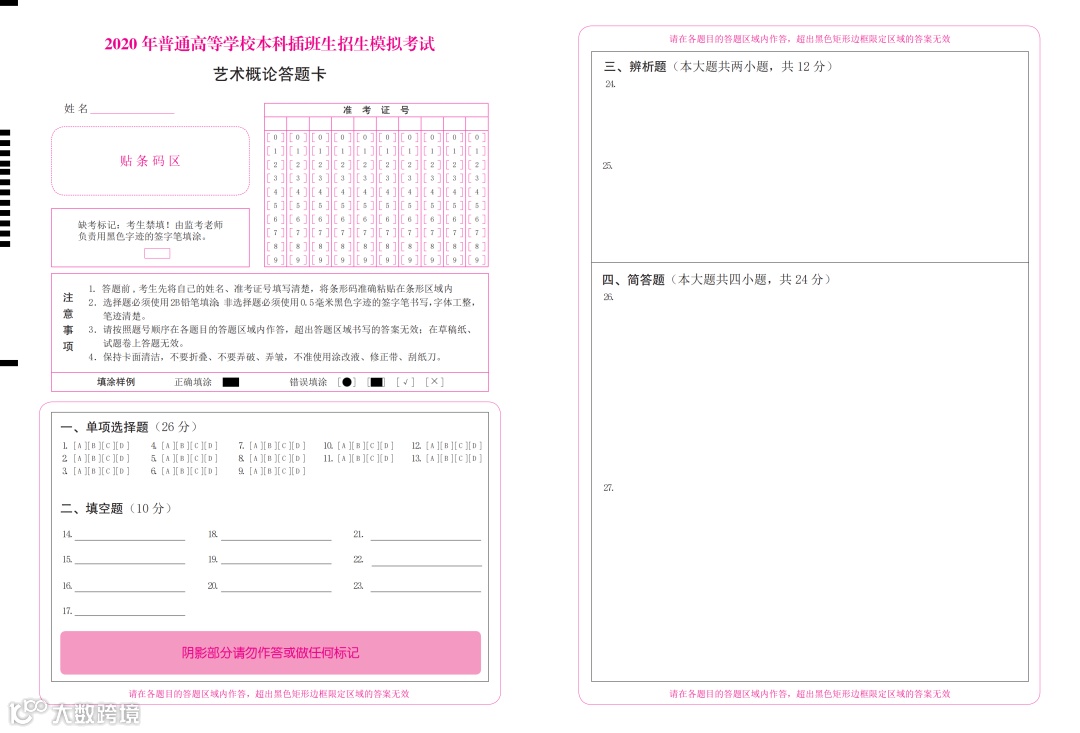 考生应在答题卡与题号相对应的答题区域答题,写在草稿纸上或非题号对应的答题区域的答案一律无效。不得使用规定以外的笔和纸答题,不得在答卷(答题卡,下同)上做任何标记,不得在规定以外的区域书写姓名考号等考生信息,否则答卷无效。