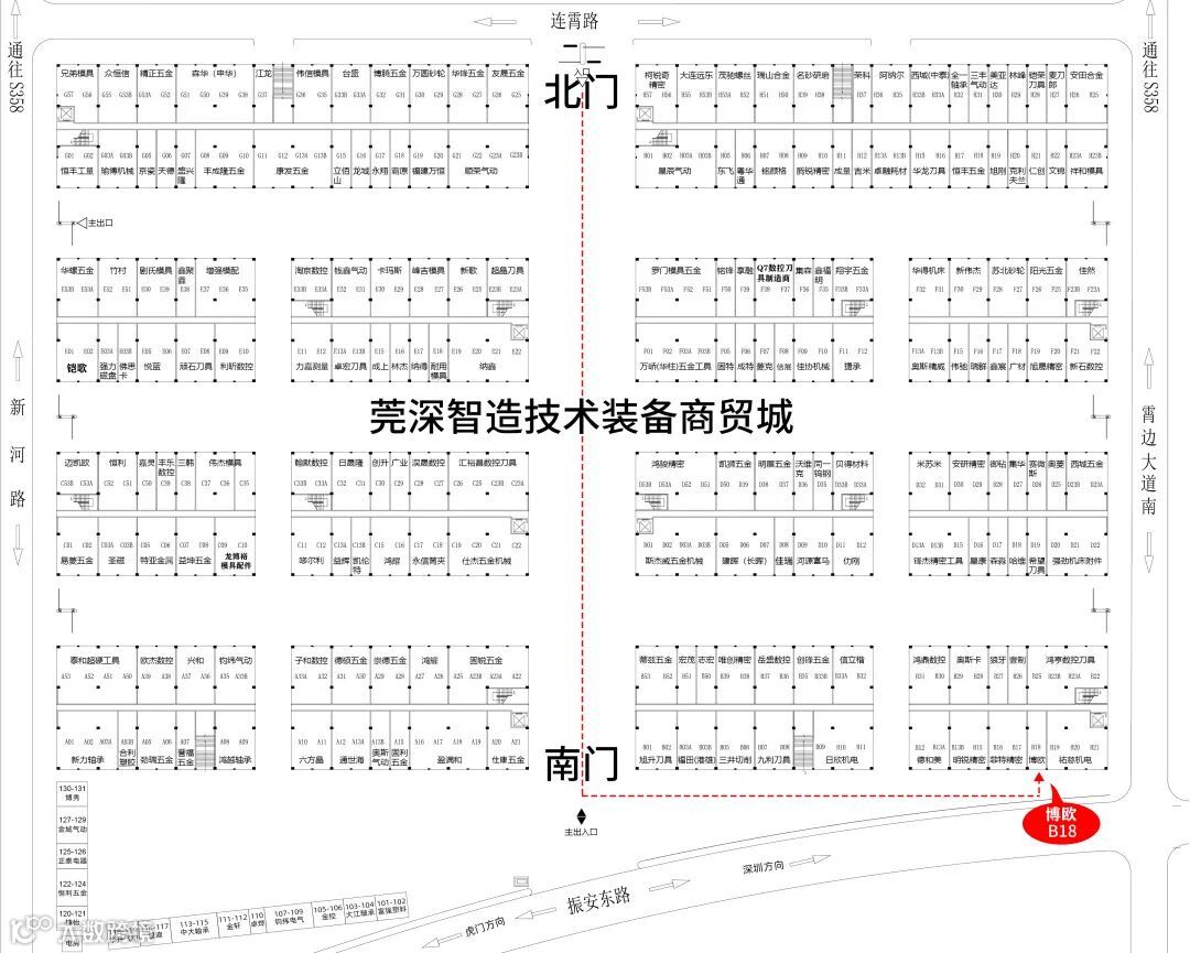 博欧铺面,从莞深智造商贸城主通道进入到B栋面向停车广场一侧第九家门面即是。