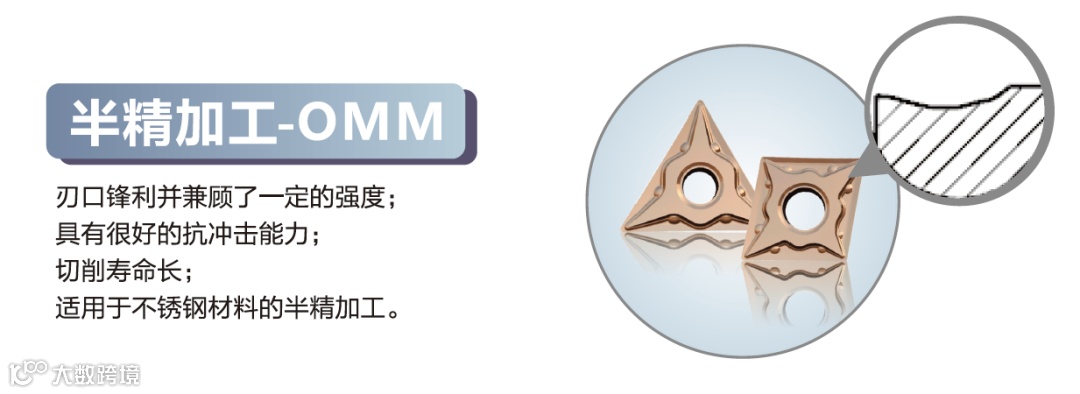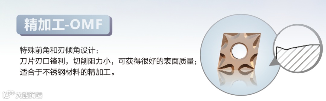 OPF槽型说明:独特的槽型设计,有效控制切削的卷曲和断屑,刃口锋利切削轻快,获得非常好的表面质量!特别适合钢类精加工。