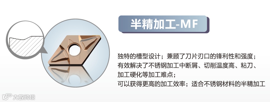 MF槽型说明:适合不锈钢半精加工、槽型。