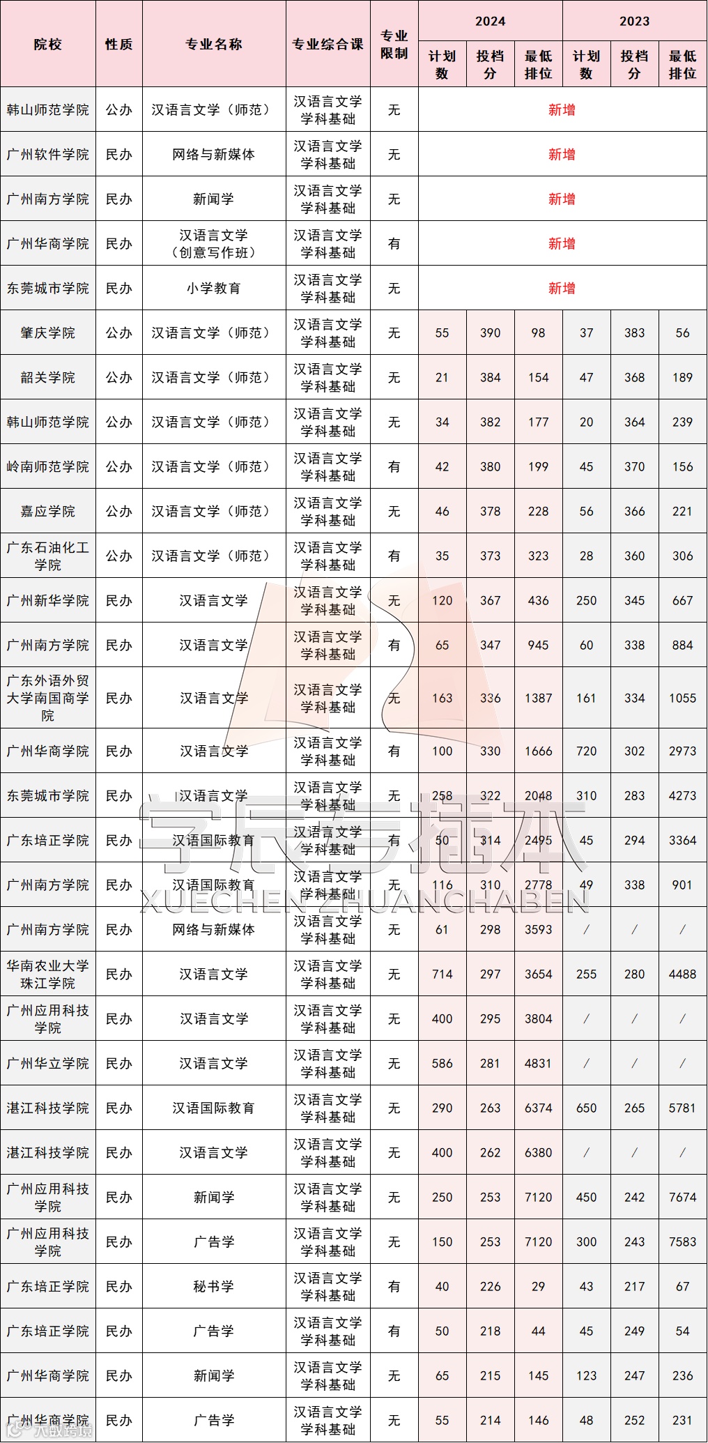 *以下表格没有统计25年不招生的专业。