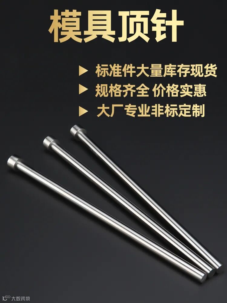 顶针是在模具注塑过程中,把产品顶出来实现产品与模具的脱离的一种配件。增强模配作为专业模配厂商,所生产的顶针,坚固耐用、广泛适配各型模具,既有标准件,亦可根据客户需求非标定制。