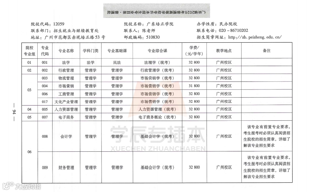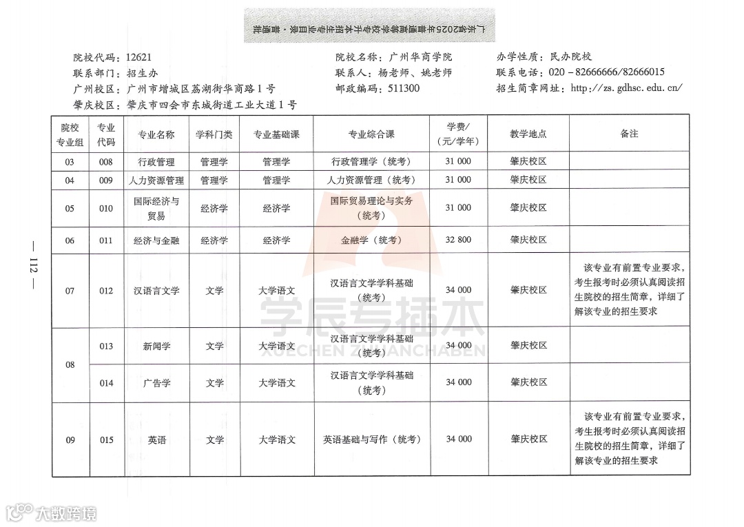 《广东省2025年普通专升本招生专业目录及考试要求》