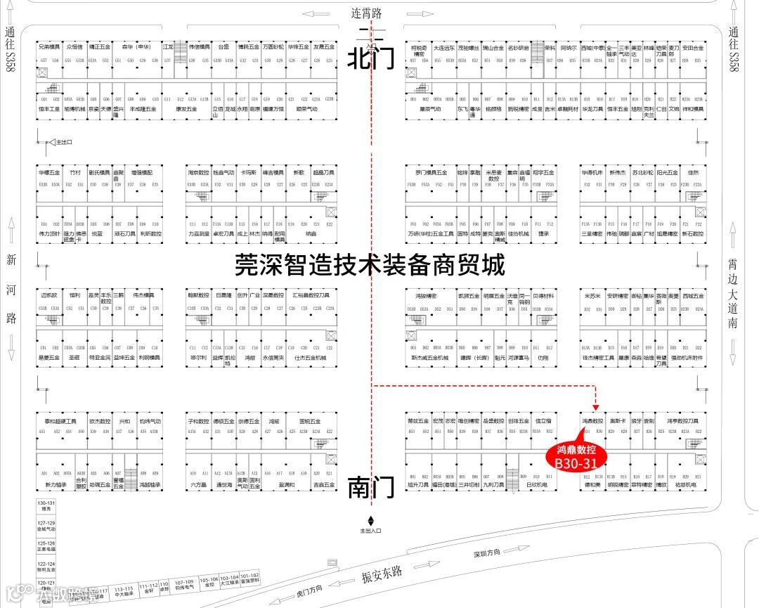 鸿鼎数控铺面,从莞深智造商贸城一期南门主通道直进至B栋与D栋的通道中央靠B栋一侧位置即是。