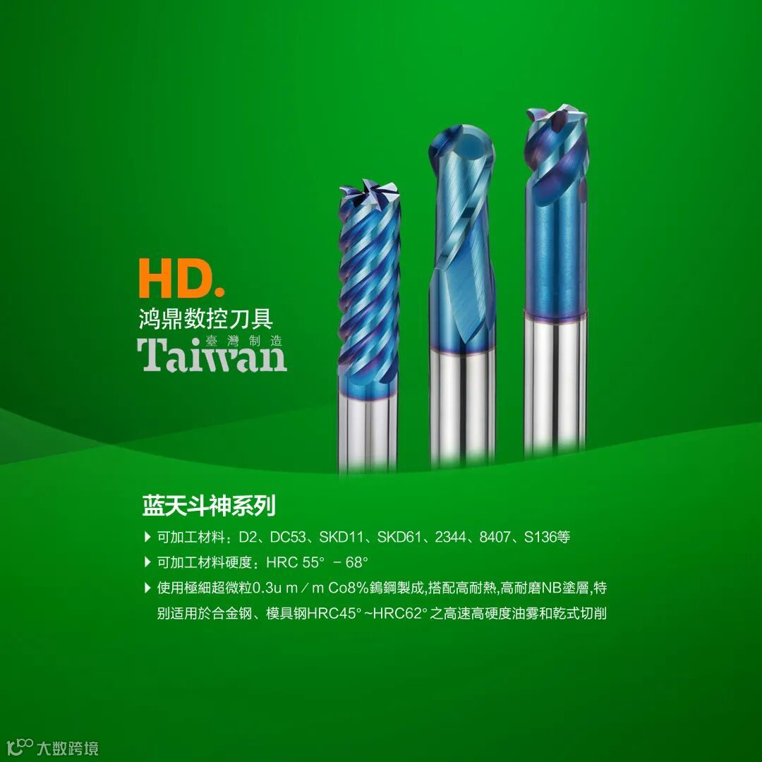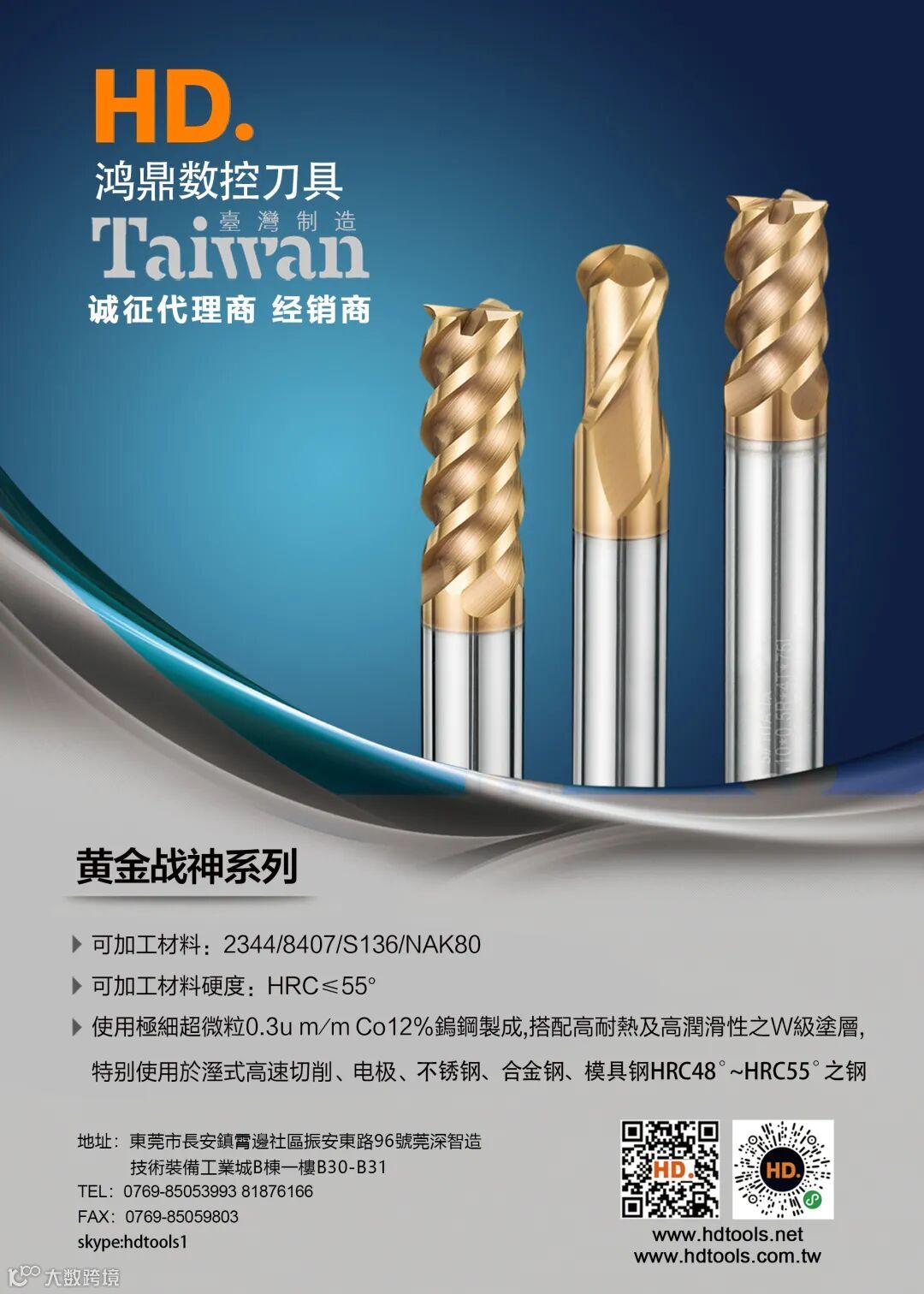 可加工D2、DC53、SKD11、SKD61、2344、8407、S136等材料,硬度:HRC55°-68,使用极细超微粒0.3um/mCo8%钨钢制成搭配高耐热,高耐磨NB涂层特别适用于合金钢、模具钢HRC45°~HRC62”之高速高硬度油雾和干式切削。