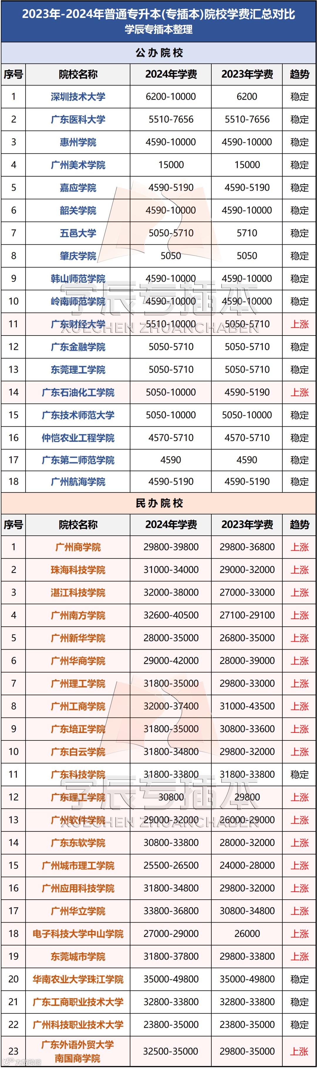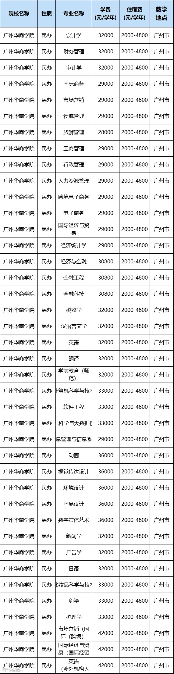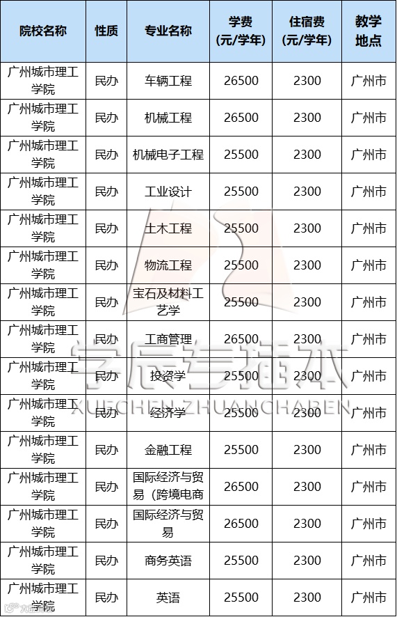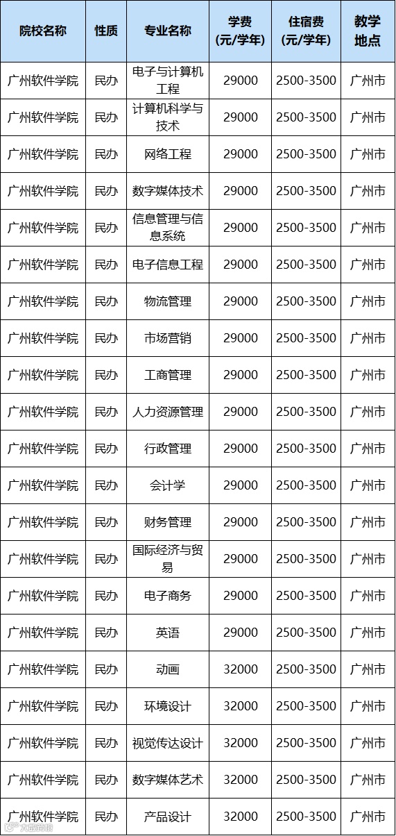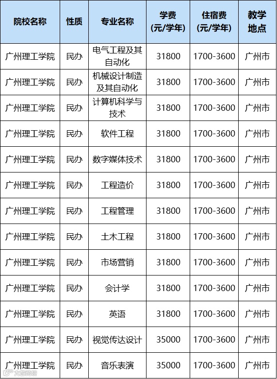 民办院校的学费每年都会上涨。除去学费相对便宜的广州城市理工学院、电子科技大学中山学院、广州科技职业技术学院外,普遍都在32000-38000元/年左右。