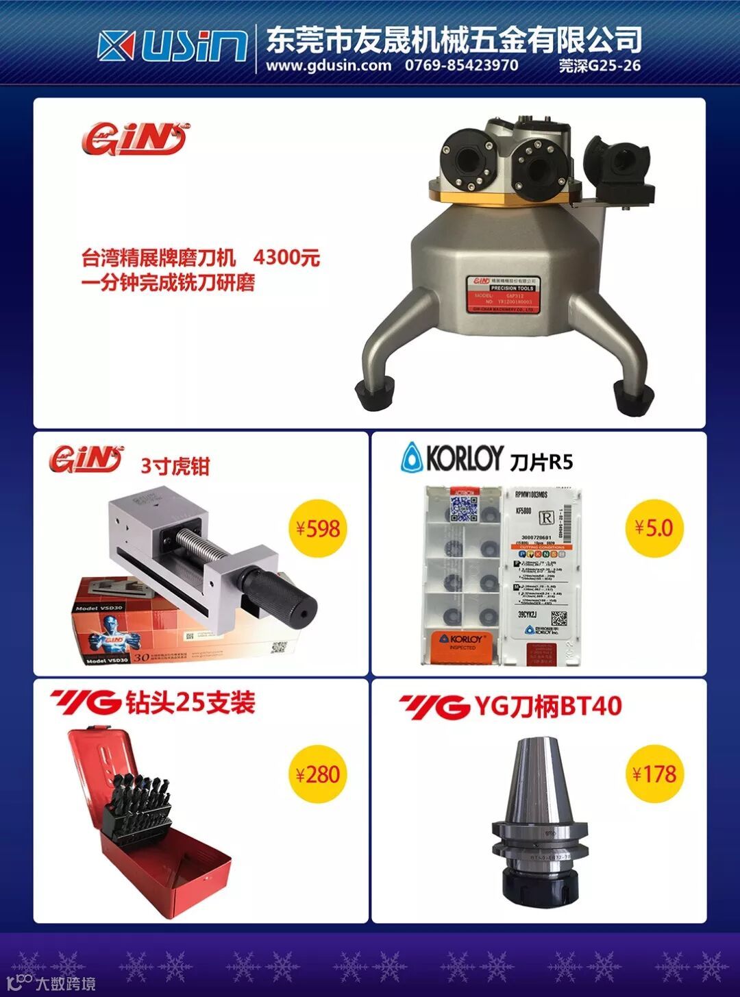 东莞市友晟机械五金有限公司,于2003年在东莞市长安镇成立,位于长安镇振安东路96号莞深智造技术装备工业城G栋25-26号,主营模具制造设备及周边耗材。多年来,在全体友晟人的努力下,我们的销售网络遍及珠三角、长三角等大陆重点地区,深受客户好评。同时,基于众多厂商的信赖与支持,我们也与多个行业优秀品牌建立了良好的合作关系。目前,我们是台湾精展工具华南区总经销商;台湾嘉宝砂轮、钻石切割片广东省总经销商;台湾OSG丝攻特约会员经销商;韩国YG刀具广东省品牌代理商;韩国KORLOY刀片特约经销商;台湾建德机床合约经销商。