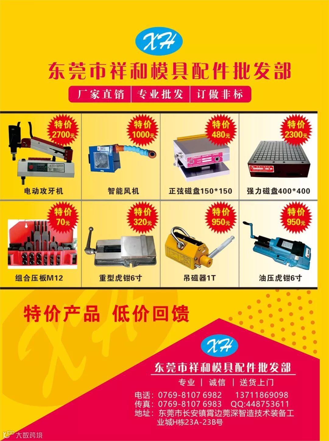 今天2019年3月14日,农历初八,距离我们4月18日的【第二届莞深五金工模具展览会】还有35天,莞深工业城祝莞深商户新的一年生意兴隆、财源广进,在2019年愿与大家万众一心,齐心协力,合作共赢,共创辉煌。今日推荐以下五位特卖产品商户。
