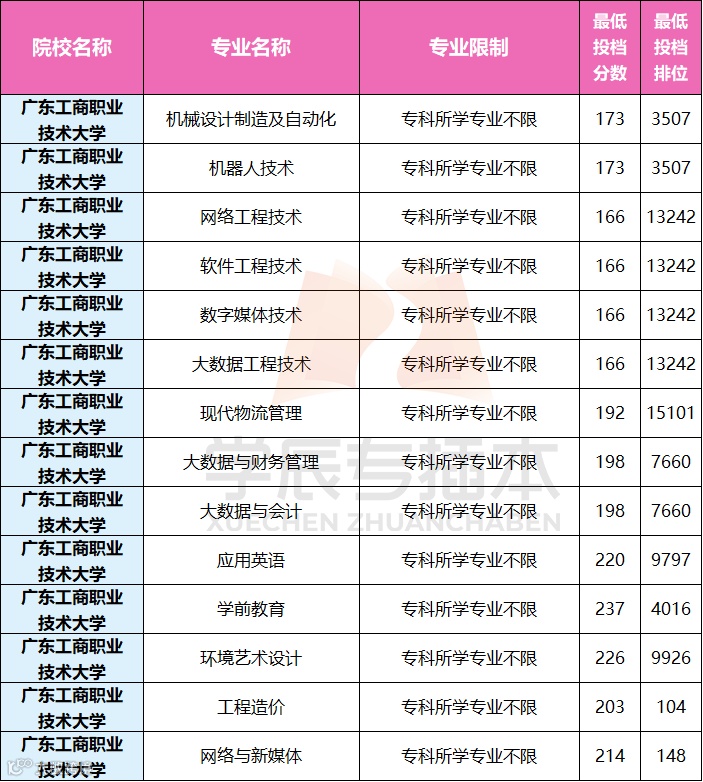 今天学辰给大家汇总了2023年广东所有插本院校基本没有限制的专业汇总,非常适合打算跨专业的同学: