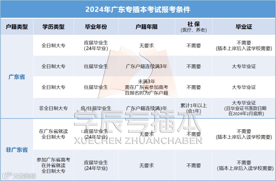 如果你是以非全日制大专的身份报考,除了要满足3年的广东户籍外,还需要另外缴纳1年的社保,所以如果考生从来没缴纳过社保的话,需要关注一下啦!(如果你25年想报考专插本但是还没缴纳过社保的话,明年是不满足报考条件的)