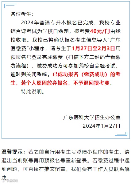 广东医科大学 2024 年普通专升本校考