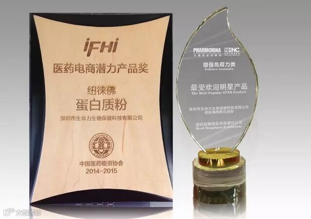 市场自有公道,付出总有回报。纽徕佛牌蛋白质粉硕果累累,接连斩获行业殊荣。在2015年4月14日举办的“大健康产业电子商务年度颁奖盛典”上,纽徕佛牌蛋白质粉荣获中国医药物资协会授予的“医药电商潜力产品奖”。在2015年5月15日上海国药会上,纽徕佛牌蛋白质粉荣获“增强免疫力类最受欢迎明星产品”殊荣。