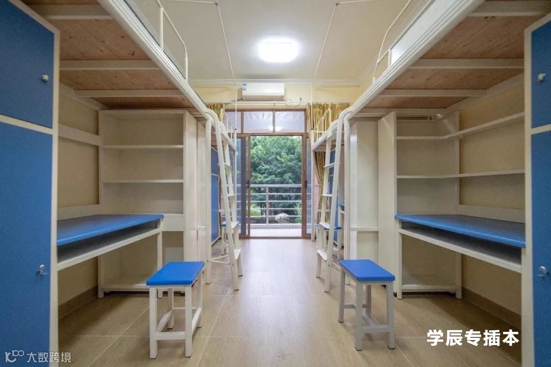 宿舍分四人间和六人间,部分宿舍楼没有六人间,一层一般为自习室或者空出来,2-7层就是学生宿舍。