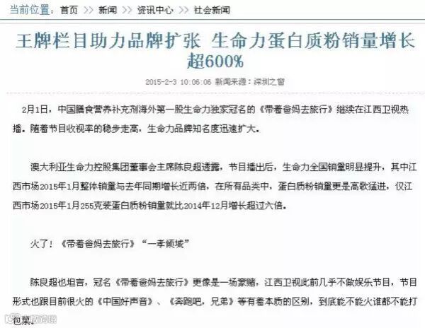 王牌栏目助力品牌扩张 生命力蛋白质粉销量增长超600%