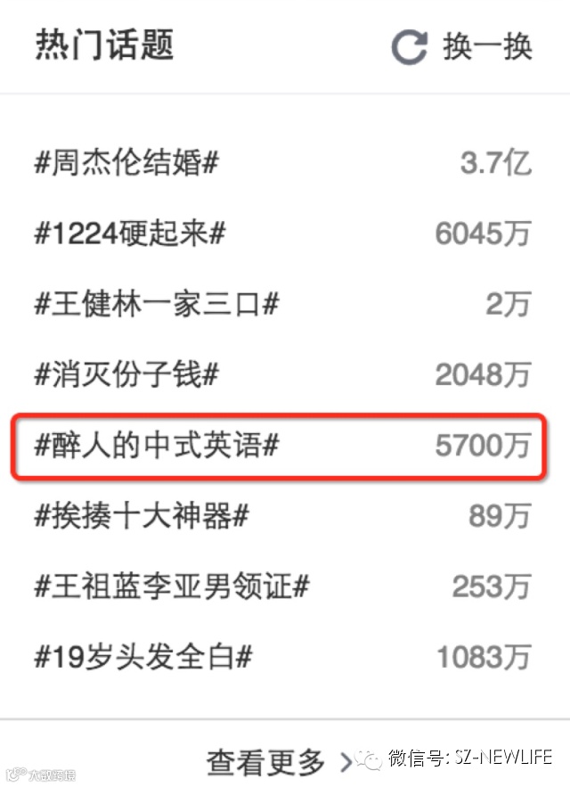 子话题#醉人的中式英语#话题阅读量793.7万,讨论量超2.3万次