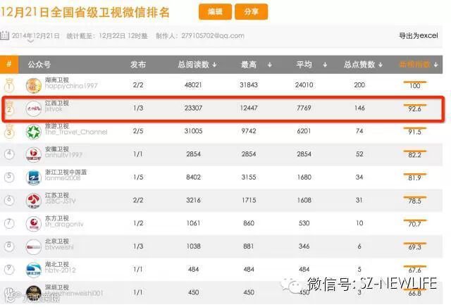 微信表现强劲,仅列湖南卫视之后排名第二