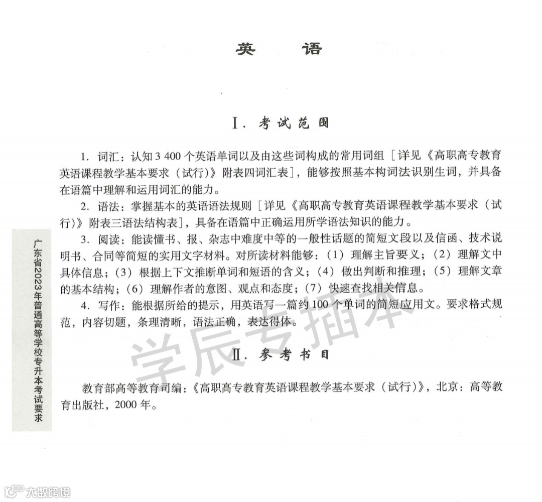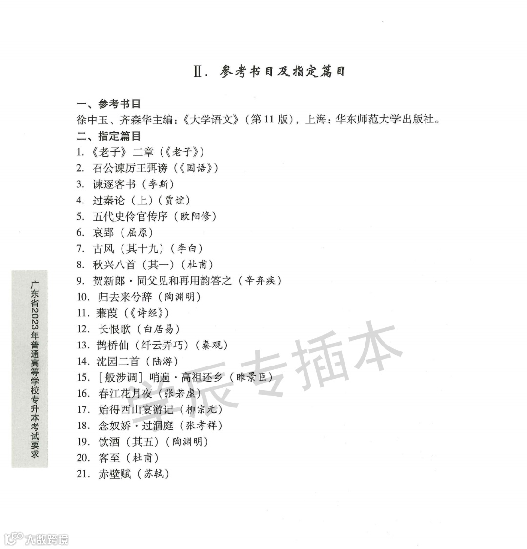 附2023年专插本考试大纲:
