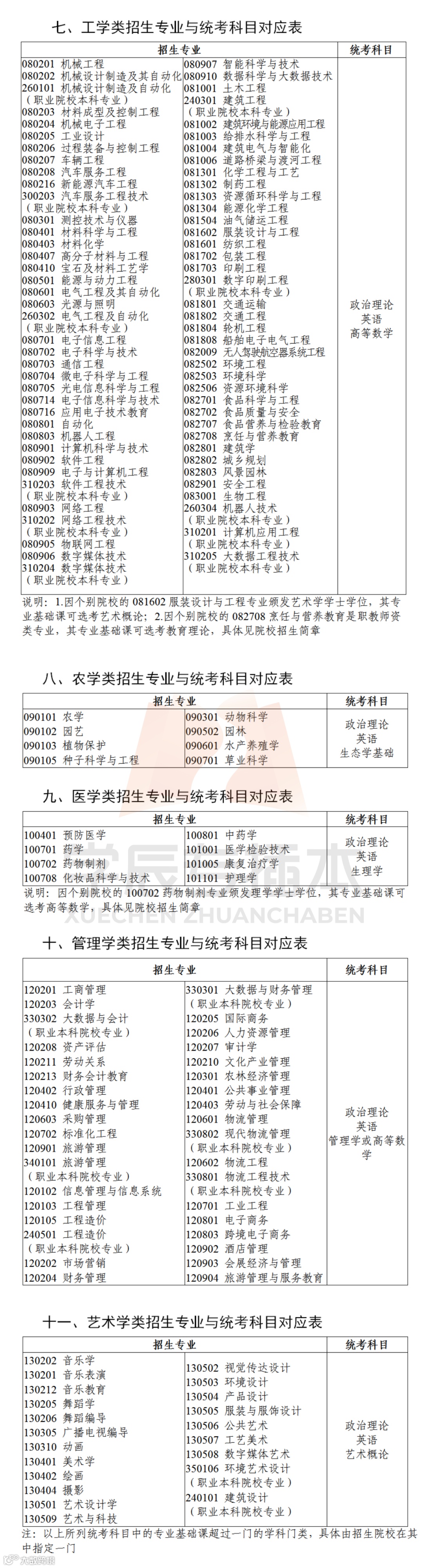 而上面没提到的专业是院校自行出题,具体考试科目以各院校招生简章公布的为准。