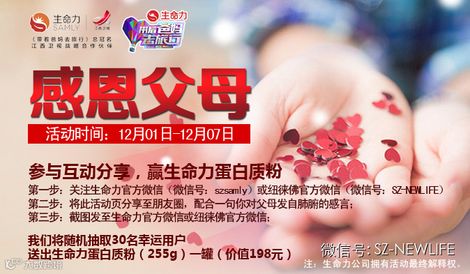 我们将随机抽取30名幸运用户送出生命力蛋白质粉(255g)一罐(价值198元);