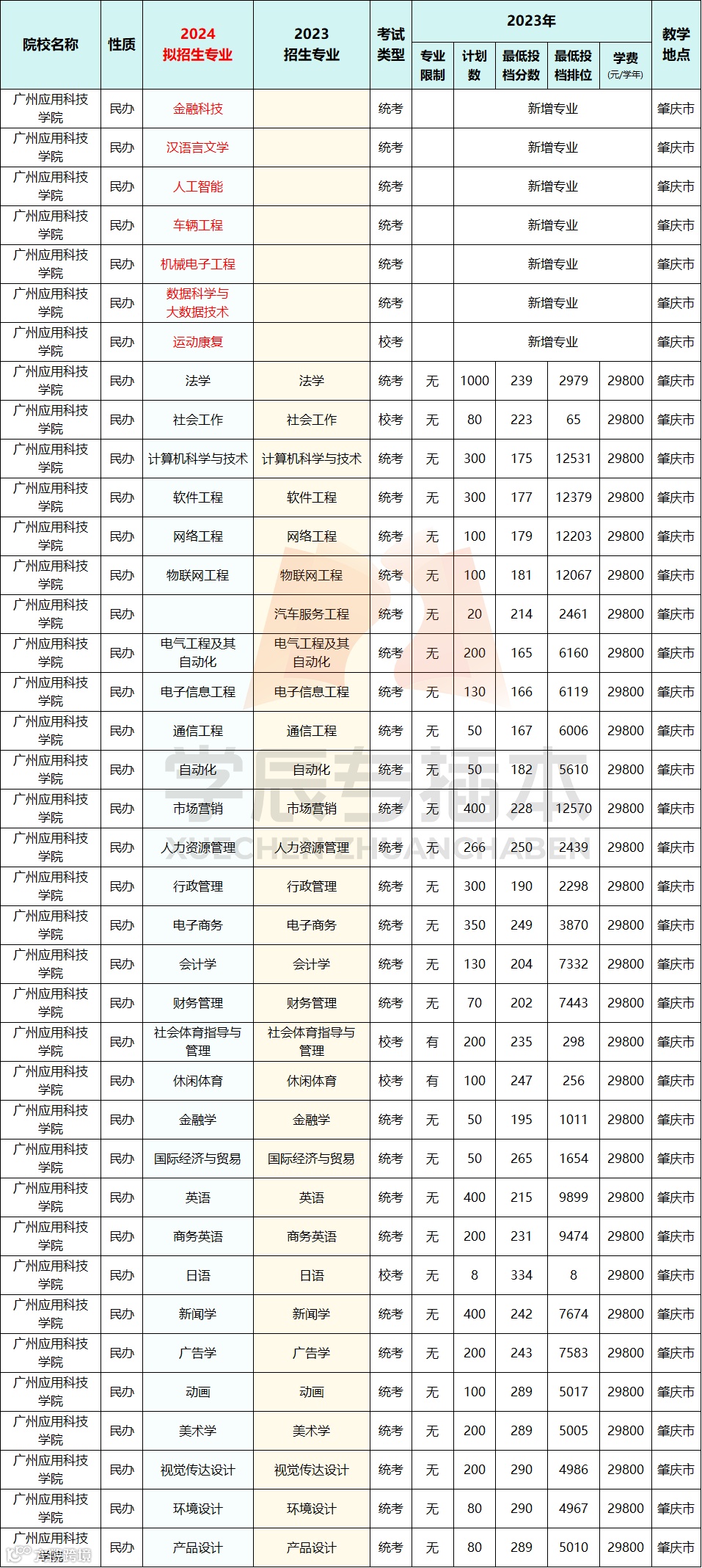 已公布拟招生院校:珠海科技学院、广州理工学院、广东白云学院、广东理工学院、广州华立学院、广州应用科技学院、华南农业大学珠江学院、广东工商职业技术大学、湛江科技学院、广东培正学院、广州城市理工学院、广东科技学院、广东东软学院