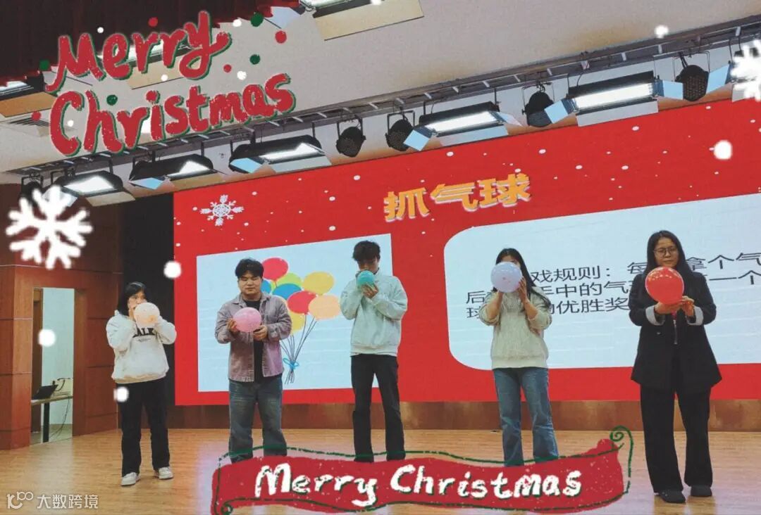 在装点着圣诞元素的会场里