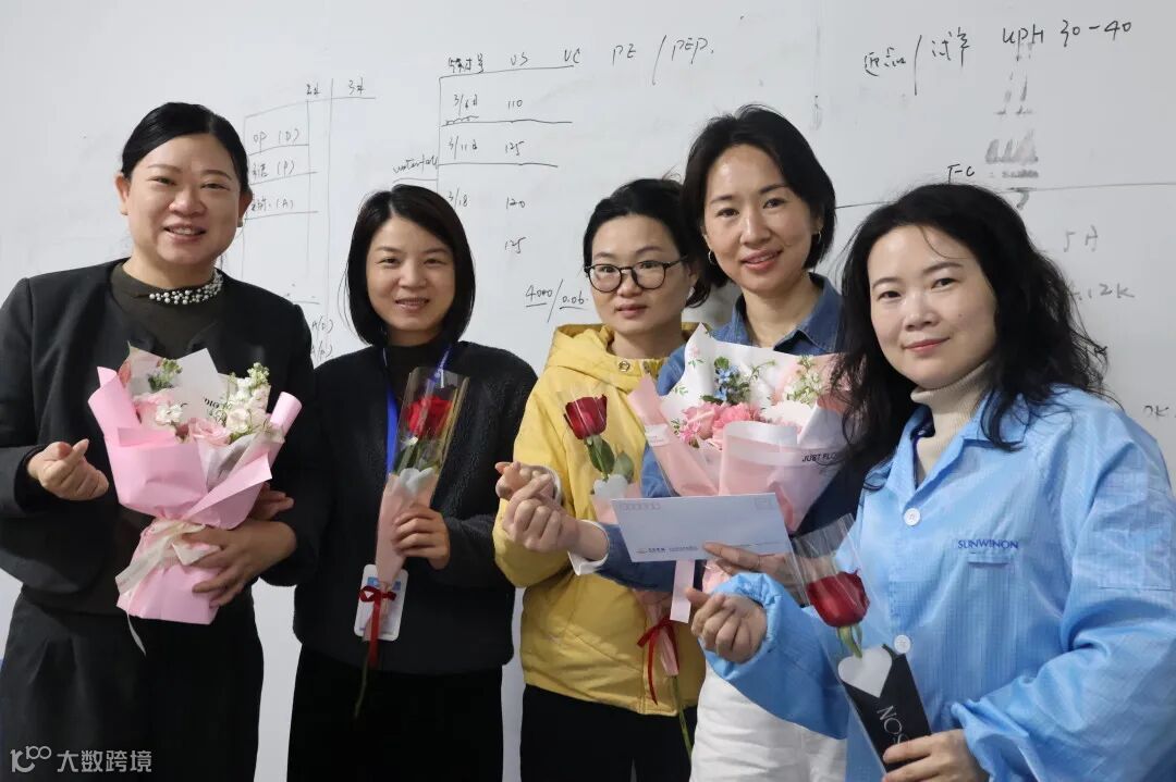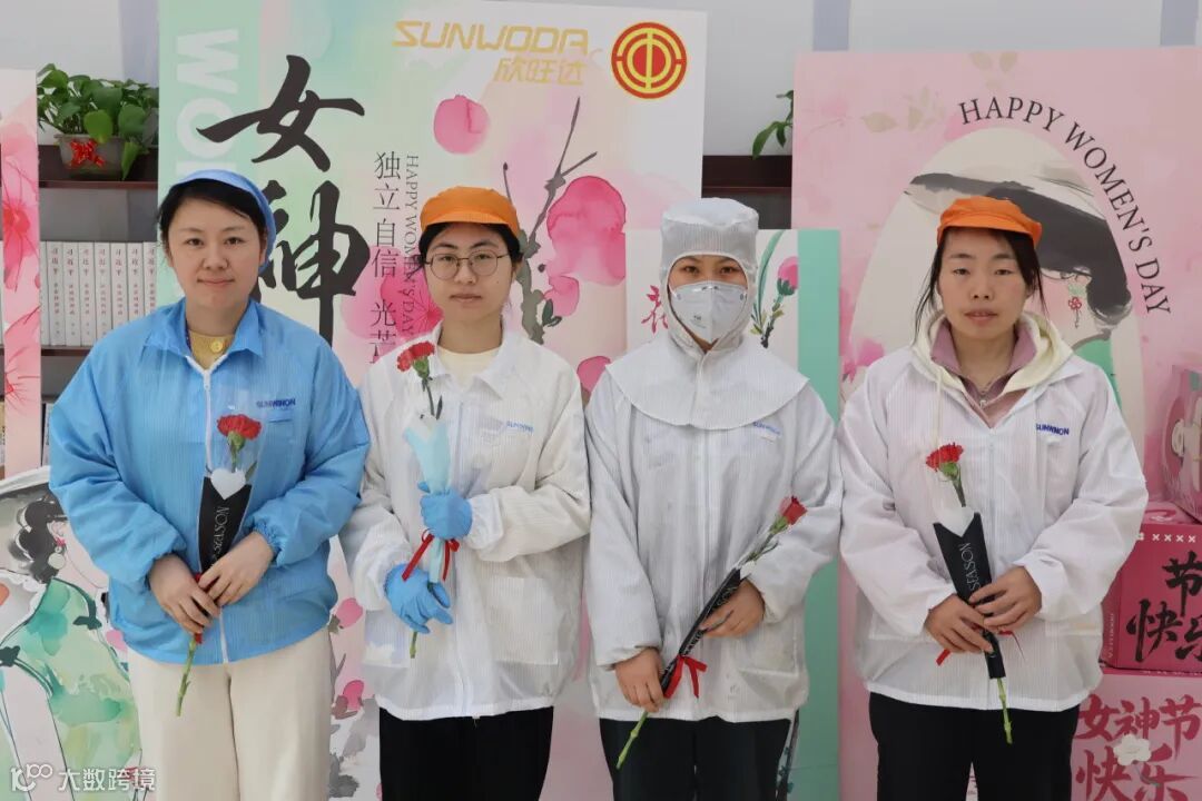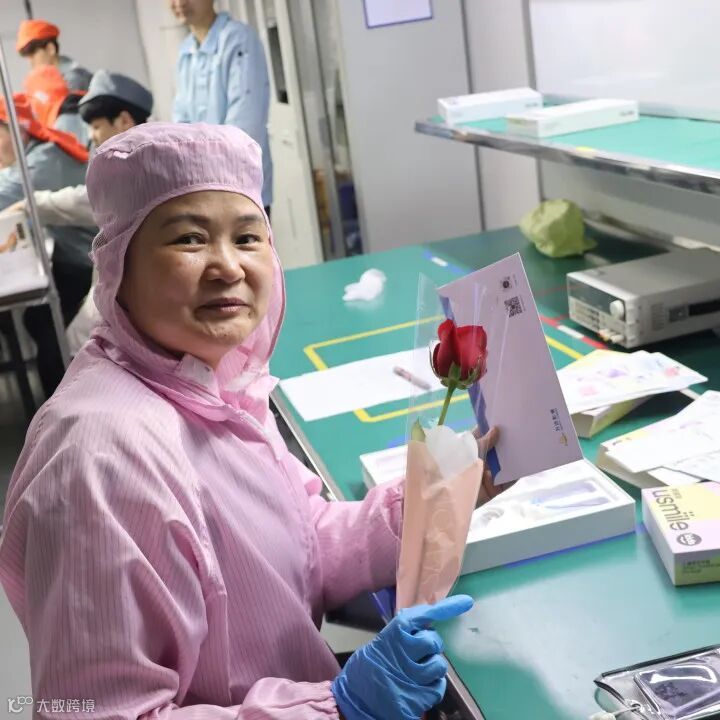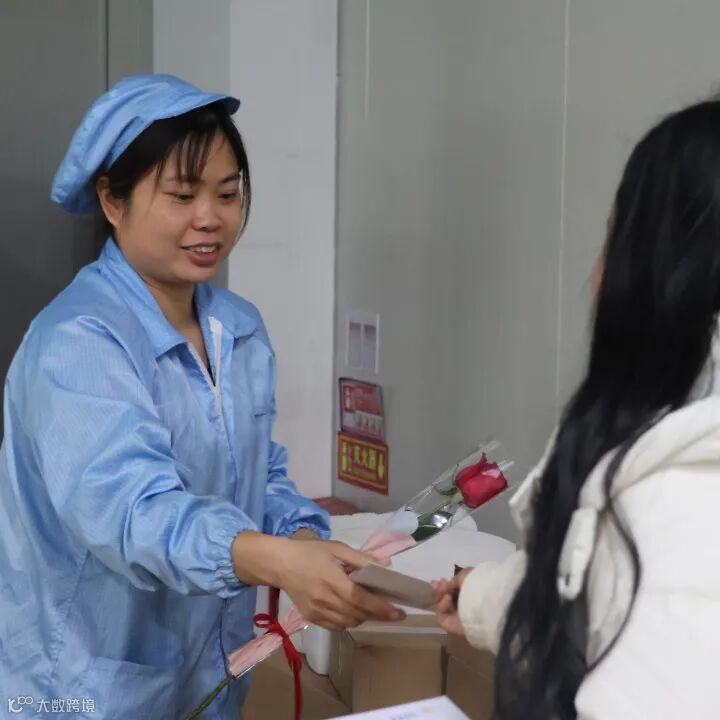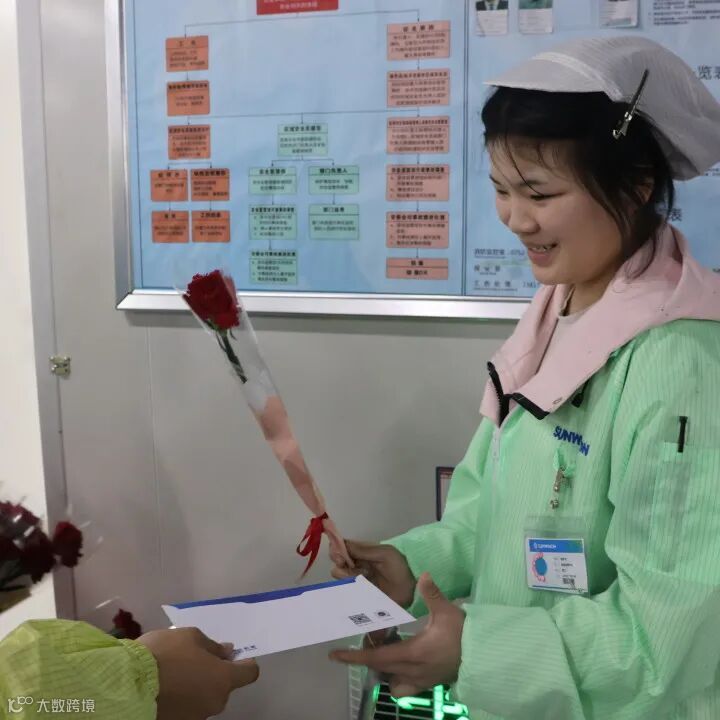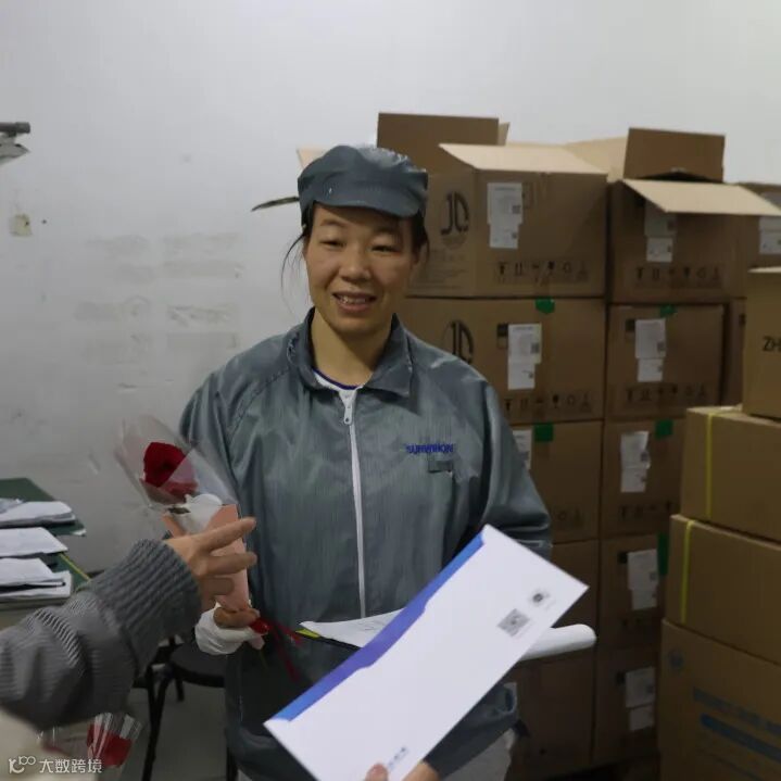 生产,向来是公司发展的重要战场,这里有一群用汗水和智慧诠释责任与担当的女性。在女神节这一天,她们依然坚守岗位,有条不紊地忙碌着。送花团队带着满满的诚意来到产线。机器的轰鸣声掩盖不了大家内心的激动,当鲜花送到产线女工手中时,她们略显粗糙却无比勤劳的双手轻轻接过,质朴的笑容绽放在脸上。