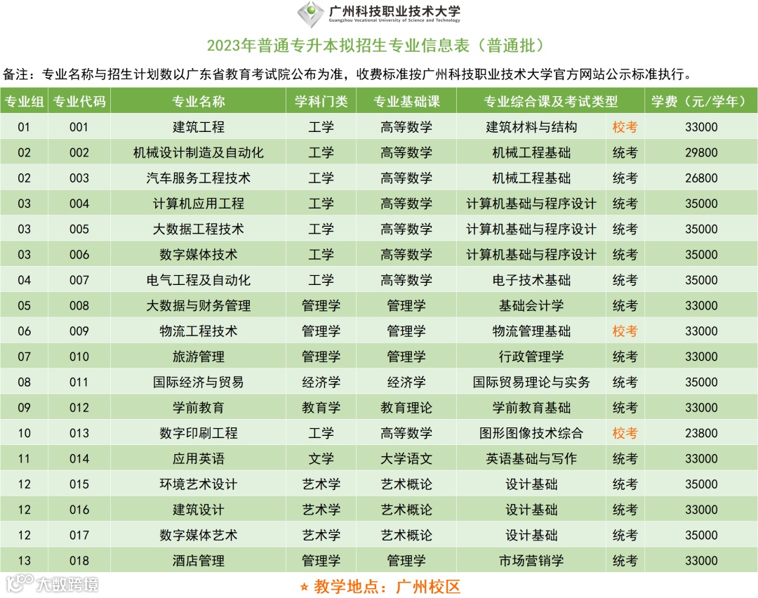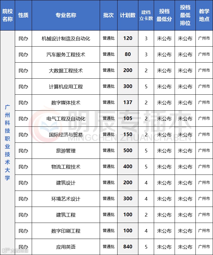 广东白云学院、广州城市理工学院、广州软件学院、广州华商学院、湛江科技学院、华南农业大学珠江学院、广州理工学院、广州华立学院、广州应用科技学院、广州商学院、广州工商学院、广州科技职业技术大学、广东科技学院、广东理工学院、广东工商职业技术大学、东莞城市学院、广州新华学院