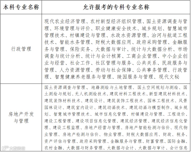 2.考生专科专业名称与下表所列一致,但带有培养方向[例:×××专业(××方向)]的可以报考。