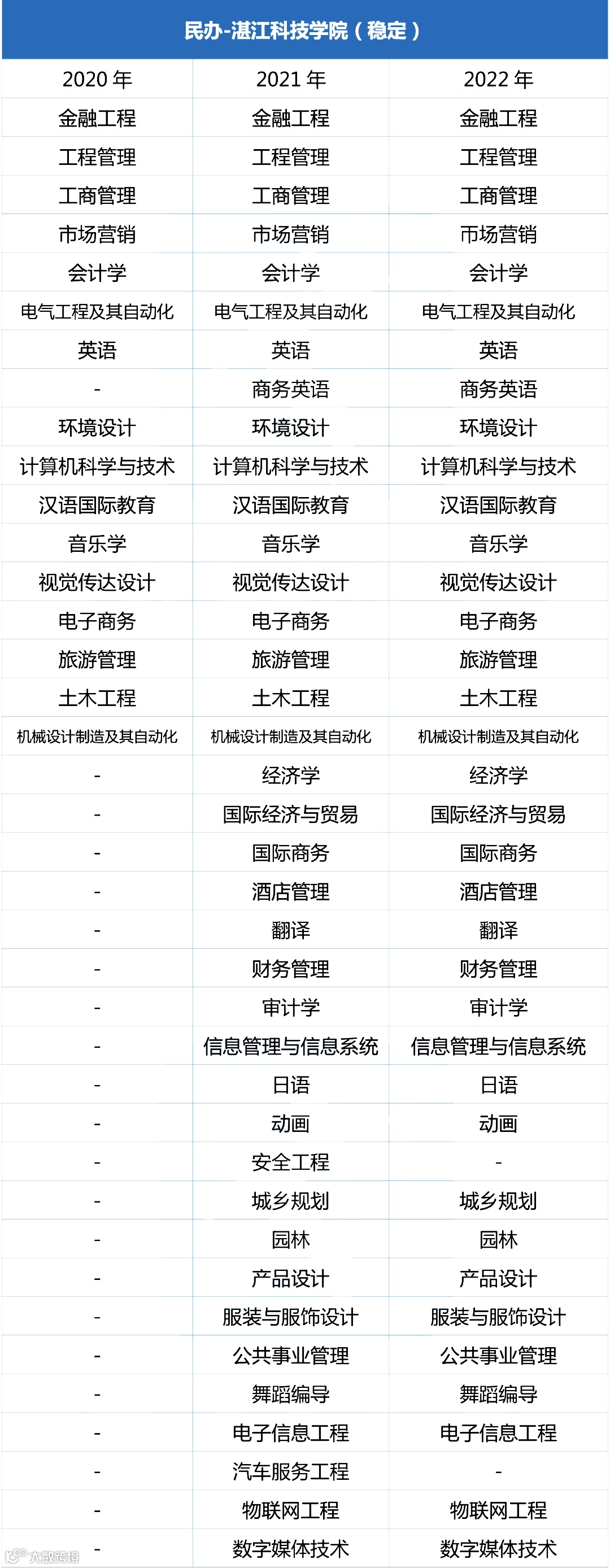 2、根据历年的招生趋势来推测23年的专业是否招生。通常来讲连续3年都招生的专业,下一年招生的概率会很高,较为稳定。所以今天给大家分析整理出公布院校近三年专插本招生专业出现的频率及趋势,虽然23年招生的专业要等到12月份以后才公布,但是也可以给大家一个参考。
