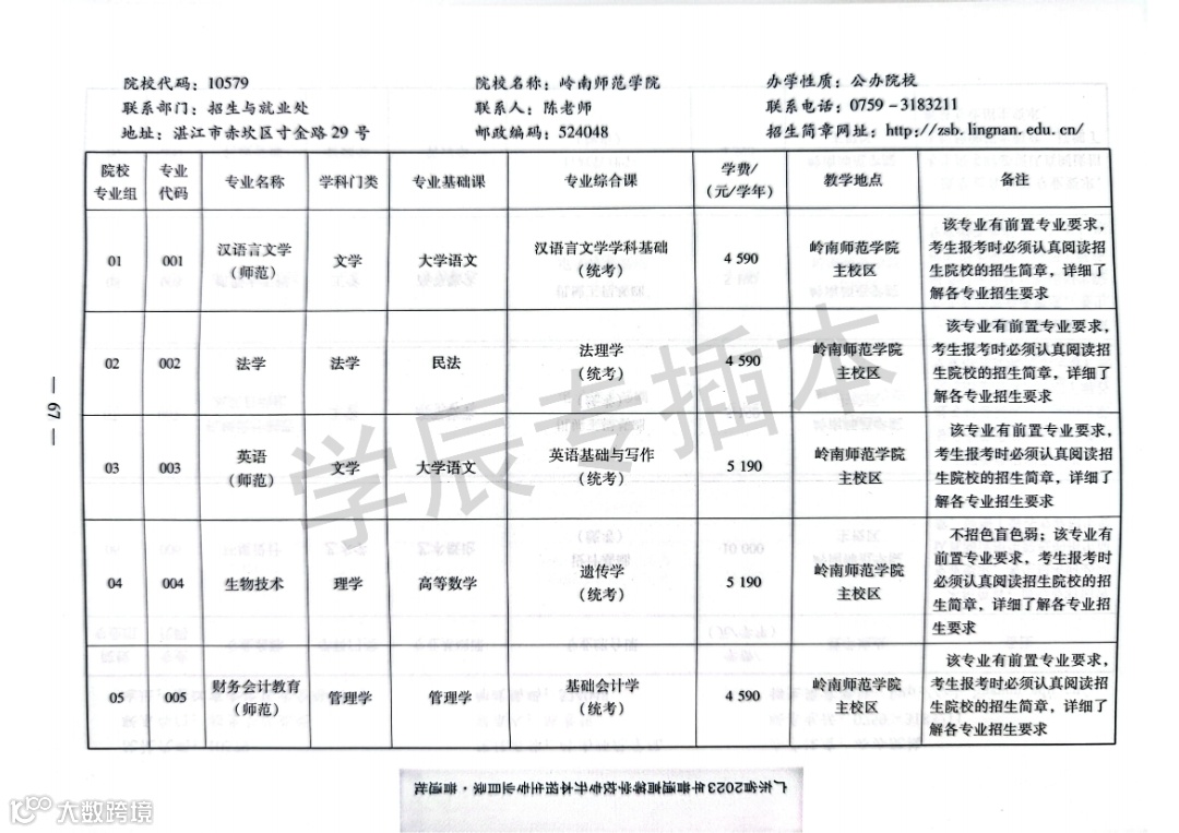《广东省2023年普通专升本招生目录及考试要求》