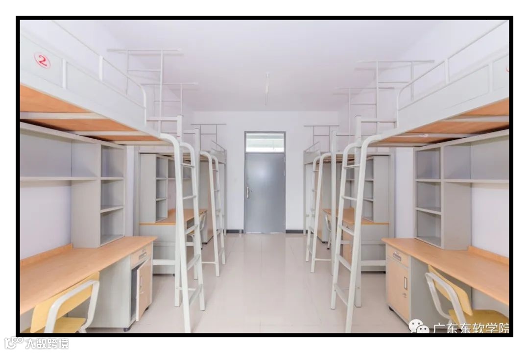每间标准学生宿舍配备4个大柜,竖立在书桌旁,书桌包括了书架、储物柜等一应俱全,满足同学们的收纳要求。