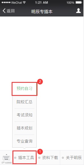 点击左下角子菜单【预约自习】