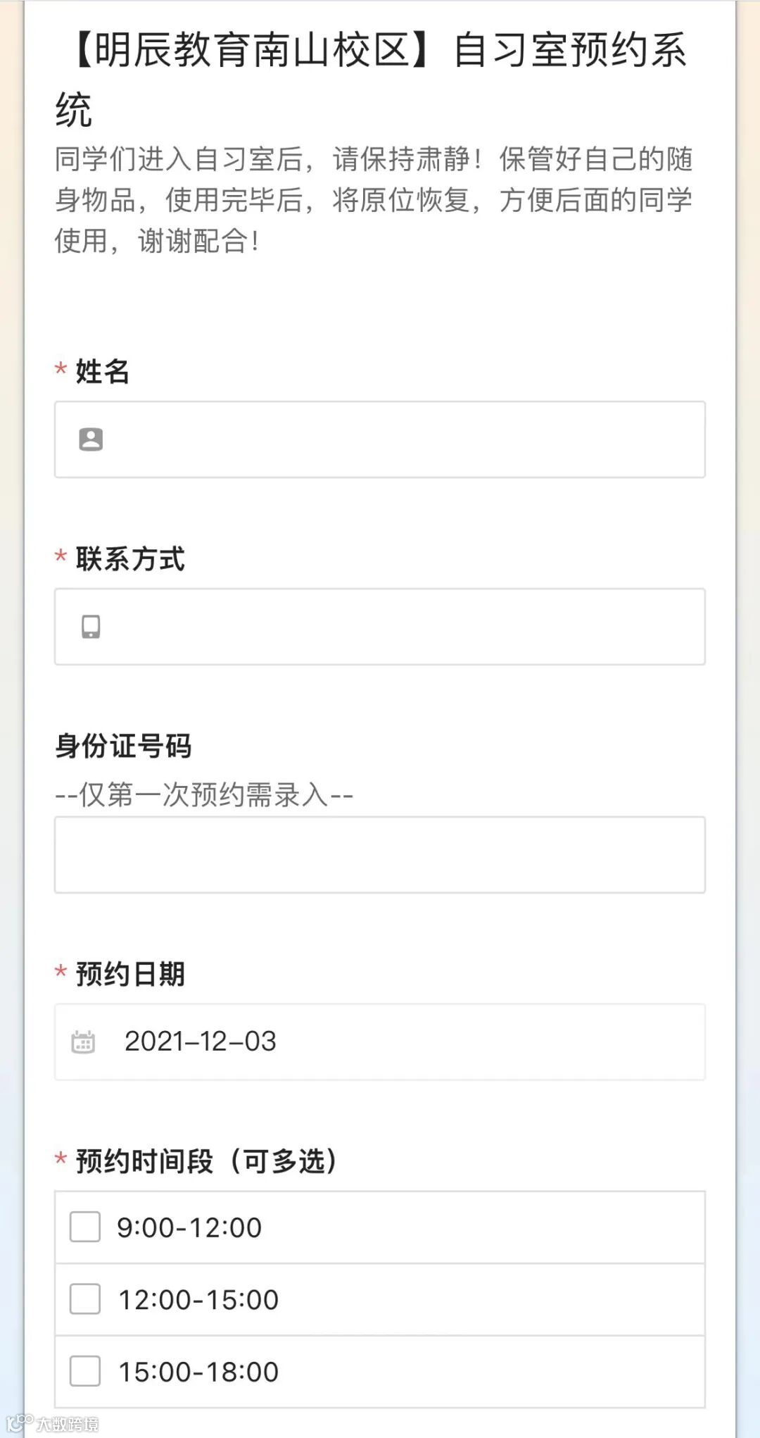 填写个人信息即可完成预约