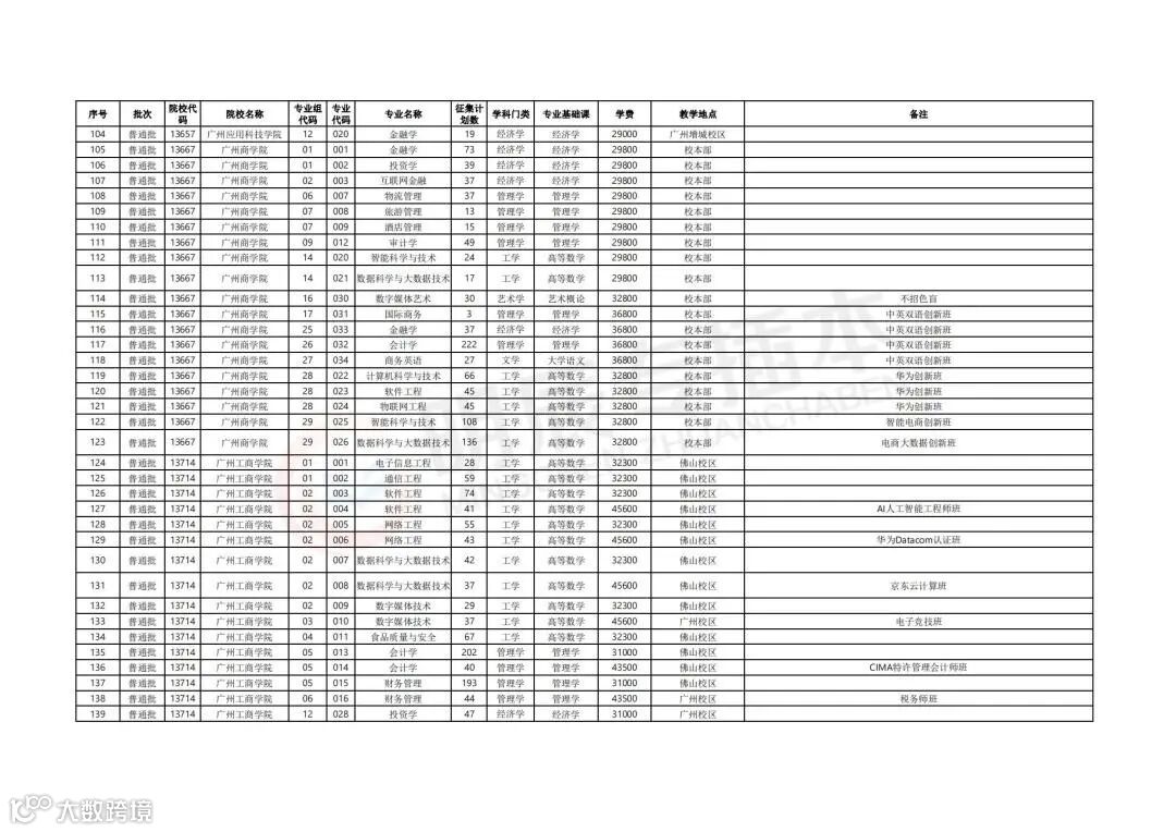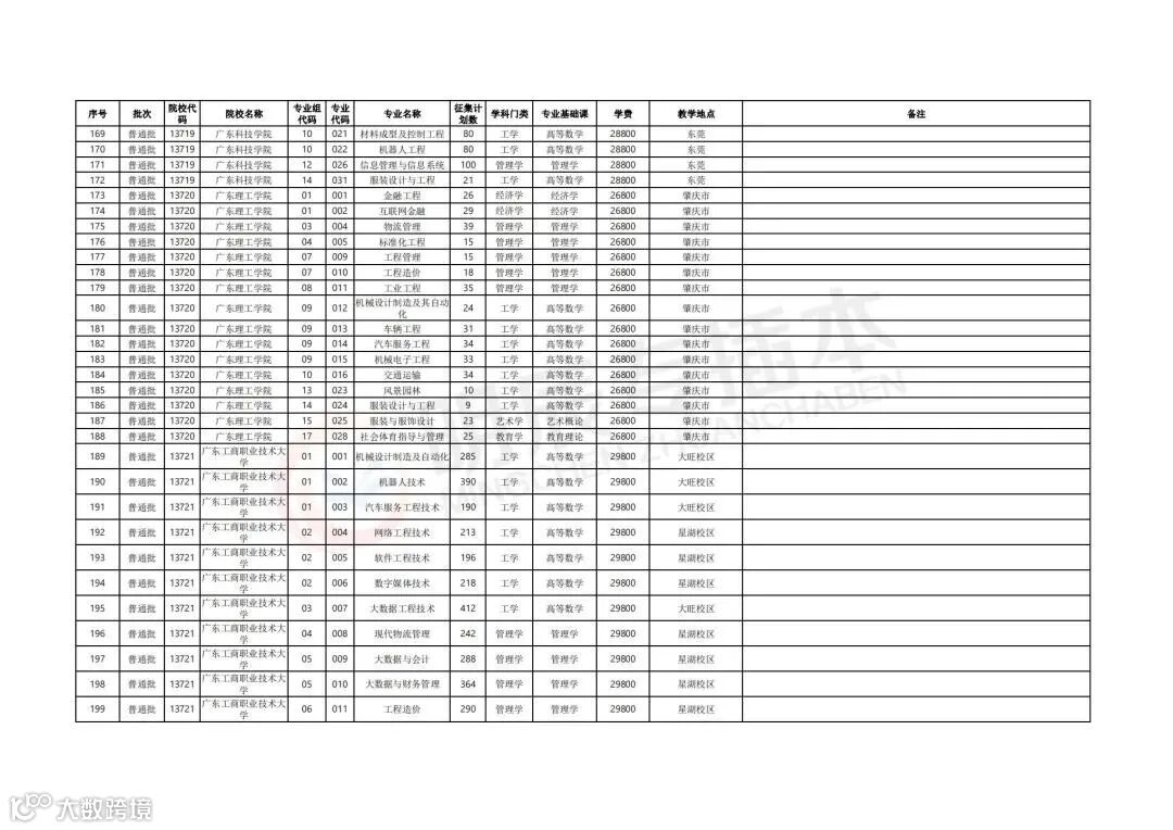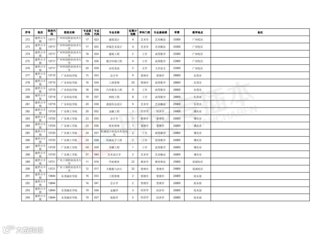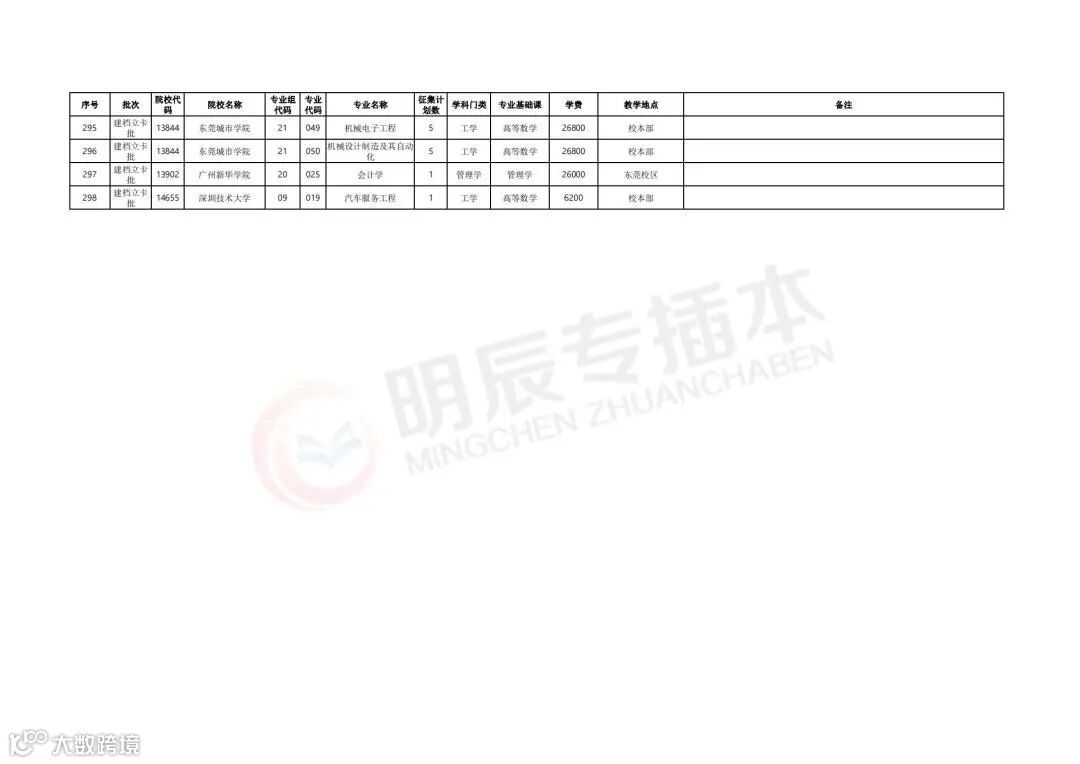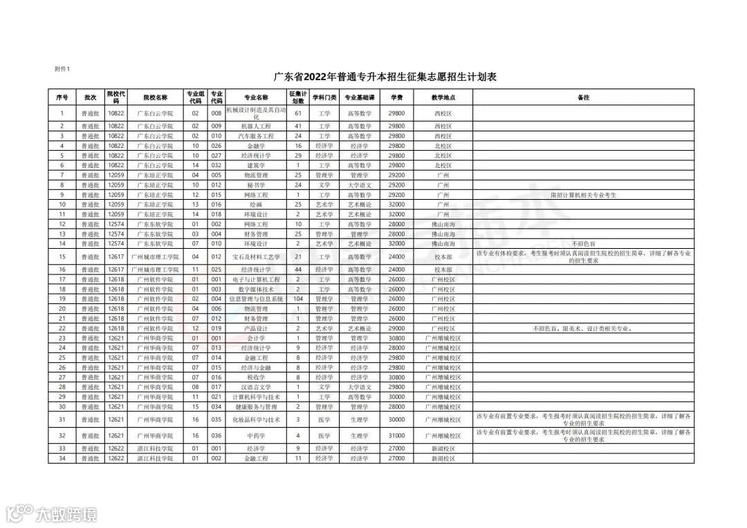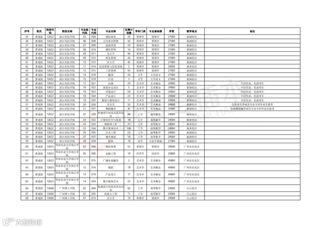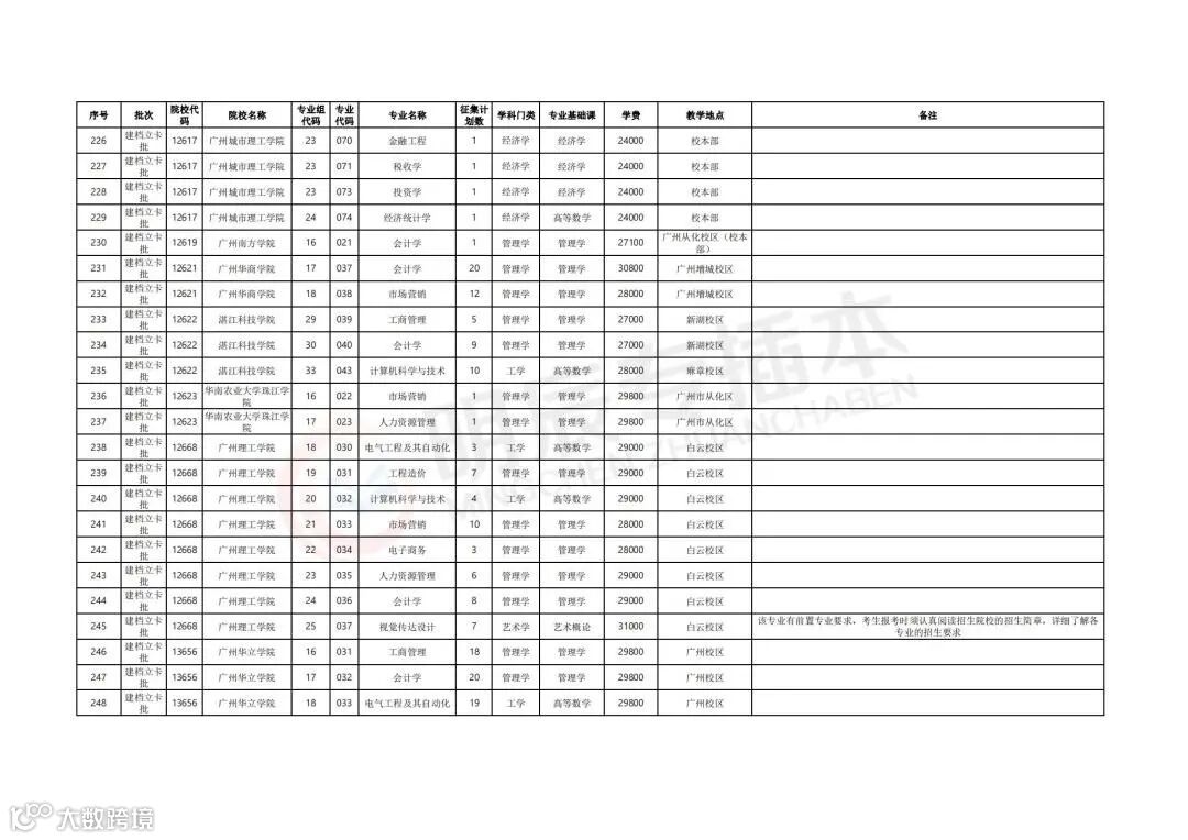 参与补录计划的院校及专业