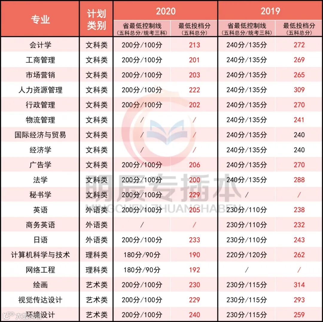 往年录取分数线: