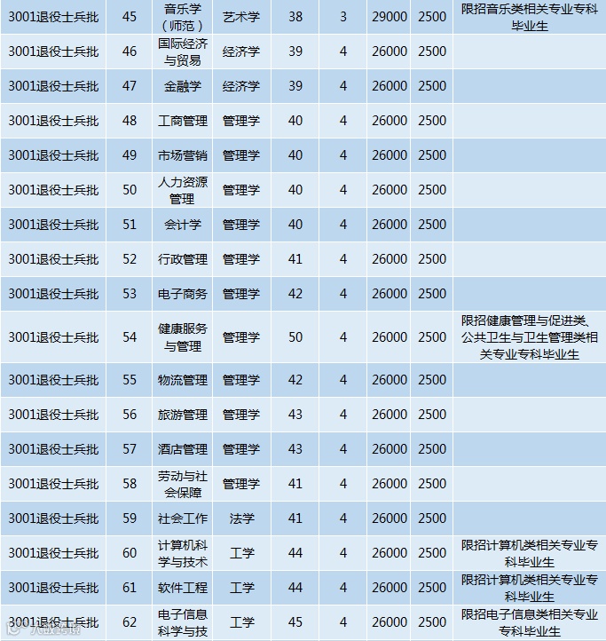 退役士兵专升本招生计划