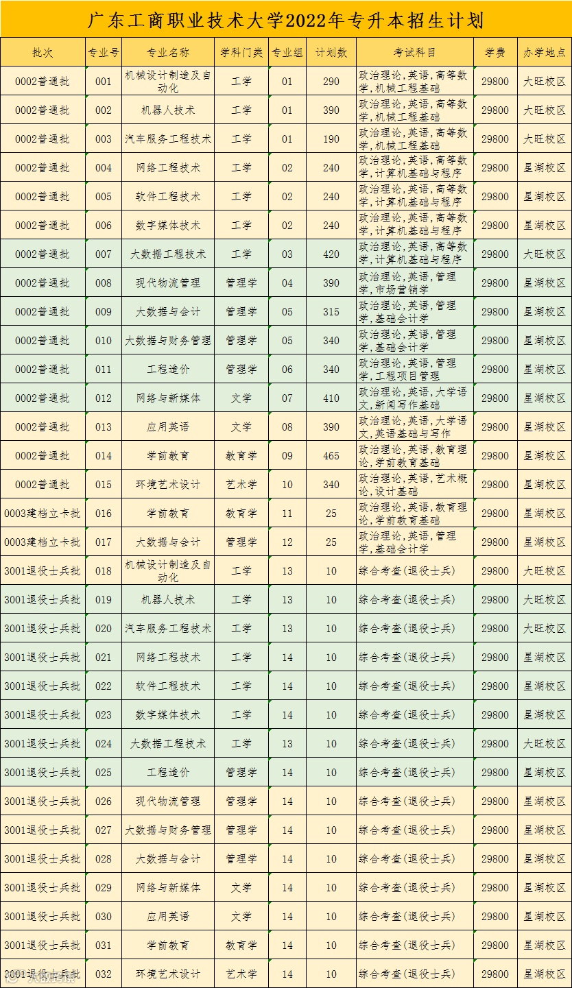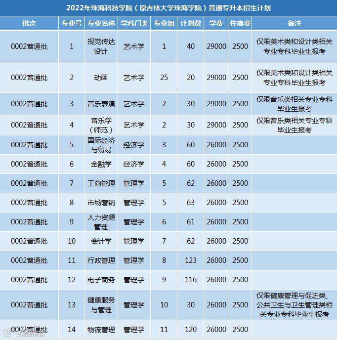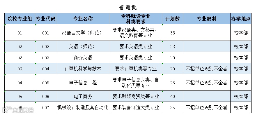普通批专升本招生计划