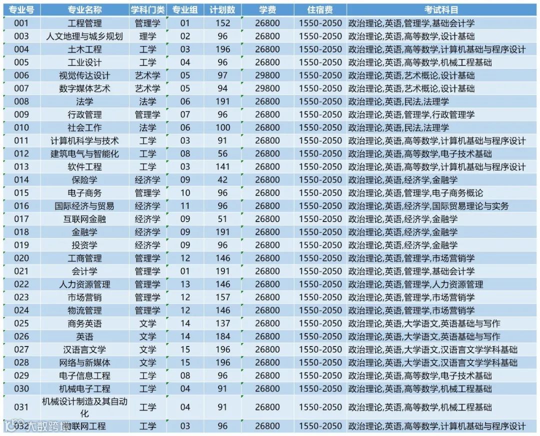 2、以上所有专业学费26800元/年;住宿费: 1800-3200元/年;