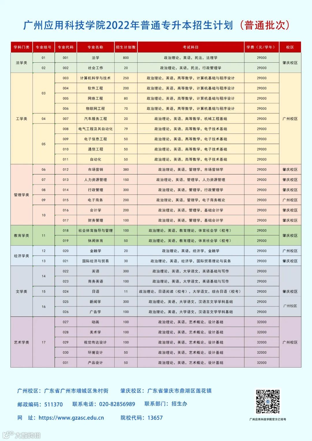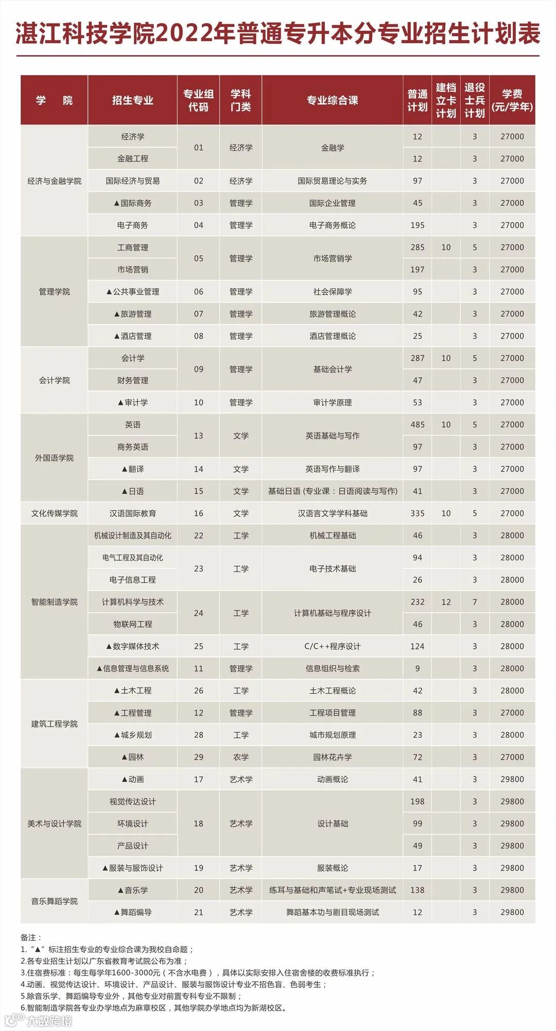 注:招生计划、专业组代码、专业代码、收费标准及专业要求以广东省教育考试院公布为准。